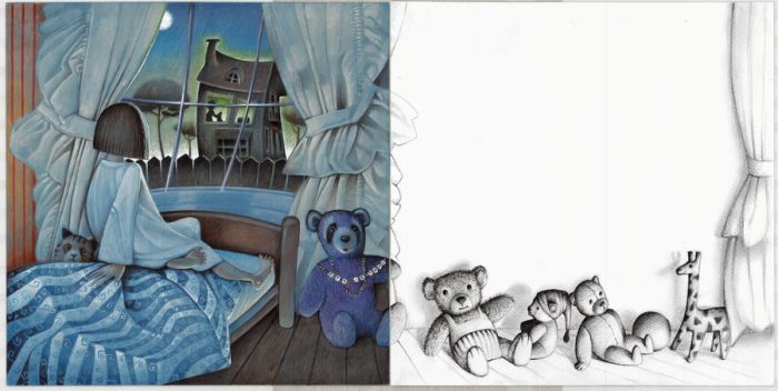 Sličan princip razvoja radnje prisutan je i u slikovnici Tajna gdje siv i mračan grad odjednom postaje šaren uz dominantan prikaz grupnih kompozicija s većim skupinama ljudi te primjenom različitih tekstura prilikom oblikovanja detalja zgrada i odjeće. Slikovnica San predstavlja potpuni zaokret u likovnom izričaju. Ranije bogate, duboko zasićene, guste i snažne boje zamjenjuje nježno i transparentno oblikovanje sadržaja koje u potpunosti odgovara temi snova. Motivi prirode utjelovljeni u tehnici vodenih boja nježni su, spokojni i krajnje idilični. Posebice je impresivan prikaz livade s tekstom pozicioniranim na vijugavoj bjelini koja presijeca livadu na dva dijela, dok se cvijeće i biljke dodiruju, pretaču te jedna iz druge izviru i jedna u drugoj nestaju. Lajtmotiv slikovnice je segment lica djevojčice sa sklopljenim očima dok ostatak ilustracije upotpunjuje bogatstvo i raznolikost svijeta o kojem djevojčica sanja, a čine ga priroda, životinje i ljudi koji utjelovljuju ljubav, sreću, mir, blagostanje i dobrotu.