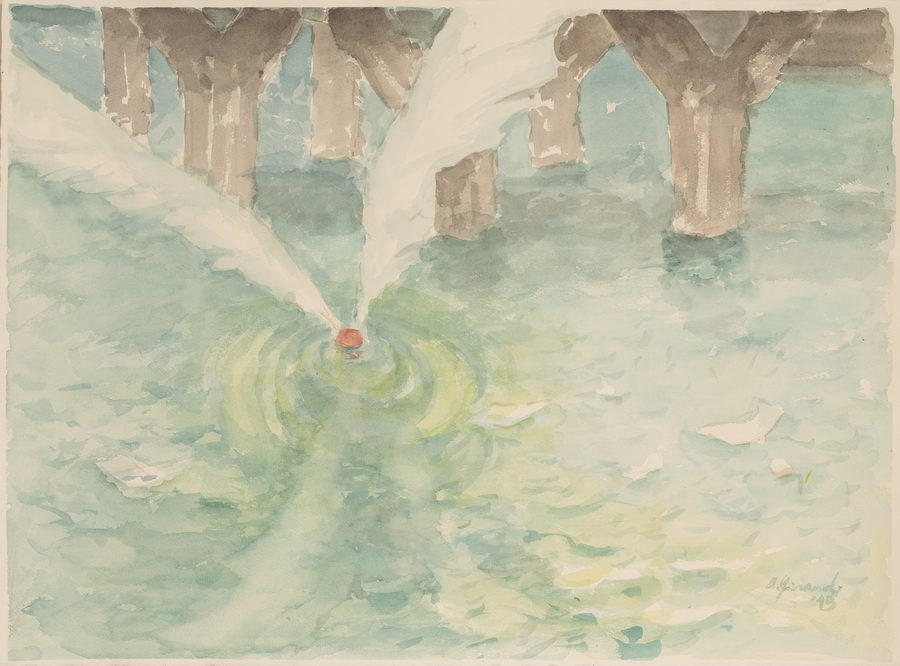 Posebnu pažnju skrećemo i na radove dugogodišnjih sudionika triennala akvarela Andrije Girardija i Ratka Janjića Joba koji svaki na svoj način doprinose bogatstvu, kvaliteti i raznolikosti ove triennalne izložbe. Opisan kao “akvarelist po osjećanju i liričar intimnih formi” Andrija Girardi ove je godine zastupljen radom “Odlazak slikara Vjekoslava Karasa” u kojem lakim tragovima kista u tankim nanosima oblikuje izuzetno blage preljeve vodene boje uspostavljajući temeljne odnose likovnih elemenata u prostoru slike. S druge strane, cjeloživotna inspiracija motivom mora definirala je opus Ratka Janjića Joba. Unutarnje gibanje vodene mase autor je dočarao bogatstvom i dubinom plave boje, gdje transparentnost ovisi o zasićenosti topila pigmentom, a razvedenost morske površine ostvarena je slojevitom tehnikom slikanja od svijetlog prema tamnom tonu. More kao simbol dinamike života u radu Ratka Janjića Joba polazište je za postizanje određene vizije svjetlosti i atmosfere prilikom čega autor zalazi u polje metafizičkog.