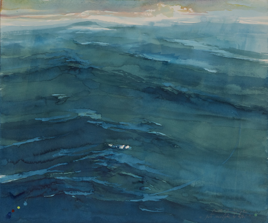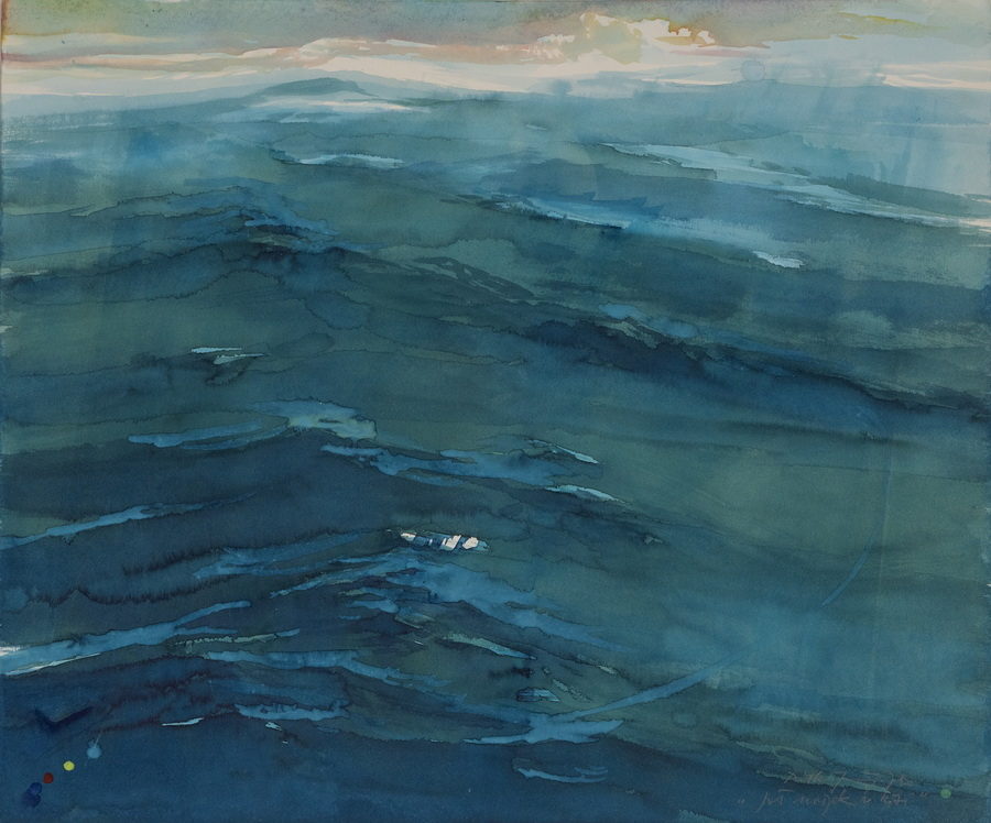 O mogućnostima i snazi vodene boje govore i djela izabrana za sudjelovanje na 8. hrvatskom triennalu akvarela. Velika otkupna nagrada ovogodišnjeg triennala pripala je Zdravku Miliću za rad “Nebeska podmornica”. U svom prepoznatljivom likovnom rukopisu Zdravko Milić zadržao se u području figurativnog ispitujući pritom ono metafizičko, nadrealno i potencijalno moguće. Pomno osmišljena kompozicija pozicioniranja glavnog sadržaja unutar dodatnog okvira asocira na pogled kroz ovalni ekran starinskog televizora koji nas vodi na putovanje u sferu paralelnih svjetova prilikom kojeg nove prostorne i vremenske dimenzije otvaraju pitanje istinskog bitka svega postojećeg. Oksimoron “nebeska podmornica” predstavlja hibridnu letjelicu koja spaja nebo i zemlju. Tehnologija uglađenog aerodinamičnog trupa u potpunoj je suprotnosti s organskim krilima koja djeluju poput mitoloških Ikarovih krila. Spojem nespojivog autor potiče naš um na oslobađanje od pretpostavljenog te ulazak u sferu kozmičkog i imaginarnog. On nas poziva da se priključimo putovanju nebeskom podmornicom te se ploveći/leteći kroz zgusnutu poentilistički oblikovanu masu otisnemo u nepoznato.