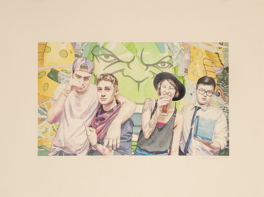 U području interpretacije ljudskog lika pronalazimo kvalitetna ostvarenja autora mlađe generacije poput Mirele Blažević, Emanuele Lekić i Stjepana Šandrka, čiji je rukopis na prvu prepoznatljiv iako značajno omekšan teksturom podloge i količinom svjetlosti u akvarelnoj izvedbi. Među figurativnim motivima ljudskog lika ističe se i rad Eugena Varzića koji u prepoznatljivom realističnom rukopisu odabire sebi svojstven motiv portreta, no pritom postavlja pred sebe novi izazov interpretacijom lica obasjanog dijagonalnim snopovima svjetlosti. Ponavljajući raster svjetlosnih linija omogućuje krajnju realizaciju akvarela u manifestaciji uhvaćene svjetlosti koja je dodatno potencirana snažnim kontrastom tamne boje gusto nanizanih dlaka šubare sa svjetlinom inkarnata dodatno osvijetljenog sunčevim zrakama.
