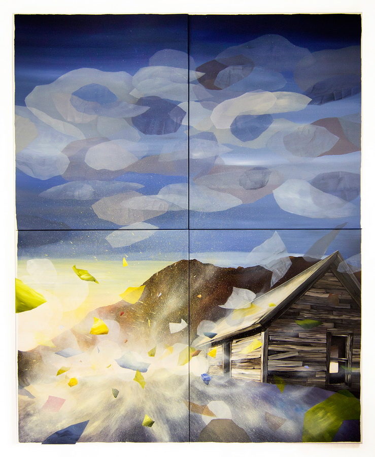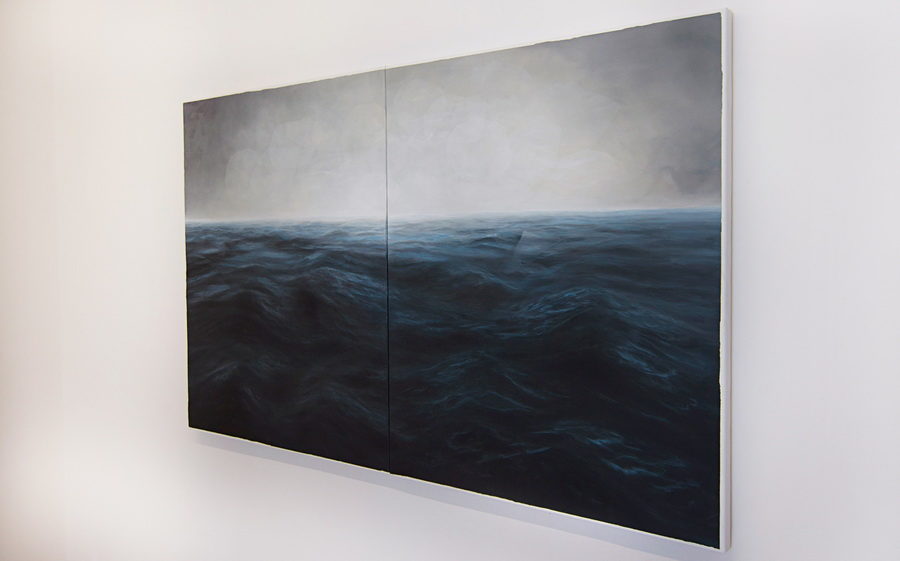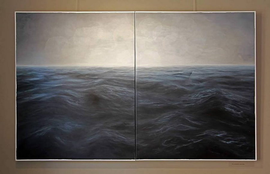 Drago mi je da si postavila to pitanje, jer vjerojatno o nijednoj slici nisam toliko razmišljala kao o toj i nijedna nije prošla toliko emocija u procesu rada kao ta slika. Na njoj sam radila puna dva mjeseca svaki dan i imala sam osjećaj da je nikada neću završiti. To je more bilo kao živo i svakim potezom kista i svakim danom je izgledalo drugačije, kao da se stvarno stalno miče i činilo mi se kao da je to slika bez završetka. Uz to, rad na njoj je bio nabijen jakim emocijama i vremenom je slika dobila i jednu posebnu simboliku. Obično se unesem u rad i raspoloženje mi ne utječe na sam proces, ali ovdje je situacija bila drugačija. Dvije bliske osobe su mi bile na samrti u to vrijeme, a kako sam imala rok izložbe koji se više nije mogao odgađati, nisam si mogla priuštiti “slobodne dane”. Slikala sam, a suze su samo išle niz lice. Kada je jedna od osoba umrla, završila sam sliku. Toni Horvatić, koji mi je bio kustos izložbe, došao je u atelje da vidi radove i dosta smo pričali o tom moru. Ono je na samom početku bilo zamišljeno da bude dio serije, prije nego sam ga počela slikati, jer je ideja bila da koncept vremena sagledam kroz nekoliko situacija tj. fenomena u prirodi, a svaki je sadržavao dva momenta: monumentalna snaga nevidljive sile vremena prikazana kroz čisto trajanje s jedne strane, i vakuum jedinstvenog trenutka koji prekida to čisto trajanje, s druge strane. Svaka slika je predstavljala jednu sekvencu. Slika mora je trebala prikazivati suštinu trajanja u gibanju morske površine, tako da promatrač osjeća tu snagu vječnog trajanja i vječnog kretanja. To je ono što sam uostalom i osjećala dok sam radila na toj slici. Trebala je biti tamnija, jer me zanimao prikaz otvorenog mora nakon nevere, tzv. mrtvog mora, kao nedokučive sile odnosno živog, beskonačnog organizma koji je ispod površine ustvari svemir i za kojeg nisi siguran da li ti pogled na njega čini ugodu ili strah. Slika je rađena tehnikom kao i ostale slike što se možda ne vidi najbolje na fotografiji rada, ali nebo je kao i nebo na ostalim slikama, no desila se jedna stvar s morskom površinom. Apstraktne kolorističke fragmente koje imam na ostalim slikama more jednostavno nije primalo. Da sam na morsku površinu aplicirala neki od tih fragmenata samo da bi se stilski približio ostalim radovima, to bi bila čista dekoracija. Budući da su mi ti fragmenti jako bitni, ne samo kao vizualni elementi, već još više sadržajno, nisam ih jednostavno mogla naslikati na moru, jer nisam osjećala potrebu za njima. Razmišljala sam zašto je to tako, zašto ih jedino more odbija, a onda sam shvatila da je more već samo po sebi pokret i jaka energija. No, da bih imala kao i na ostalim slikama moment prekidanja čistog trajanja u trenutku, morala sam moru pristupiti na drugačiji način, bez vizualnih fragmenata. I došla sam na ideju da ću moru dodati fragmente, ali – zvučne. I tako sam na izložbi more smjestila u zasebnu prostoriju – bijelu sobu s klupom i slušalicama, a na njima se puštao duboki zvuk otvorenog mora u trajanju od nešto manje od minute koji je stavljen na loop bez editiranja, znači s oštrim rezom, prekidom i tako u krug. I time je more dobilo ono što je trebalo, ali bez vizualnog prikaza. To more je na izložbi dobilo i posebnu simboliku, bila je to predzadnja slika u seriji, a zadnja s kojom je završilo meni osobno iznimno teško razdoblje. Neki su prijatelji, koji su poznavali moju situaciju i sve što se događalo u tom periodu, na izložbi komentirali simboliku mora, koje je podijeljeno i fizički: vodoravno crtom horizonta i vertikalno formom diptiha, sa svjetlom koje se pojavljuje na horizontu netom nakon nevere. Iza mene je tada bila godina i pol dana teškog razdoblja u kojem sam se liječila i oporavljala od teške nesreće i godinu dana mi se život svodio na bolnice, nisam mogla slikati i u tom periodu su mi umrle četiri bliske osobe. I ta posljednja smrt se dogodila tjedan dana pred otvorenje izložbe i još sam završavala posljednju najveću sliku iz šest dijelova. Došlo je otvorenje i od te izložbe kao da je netko vrijeme oštro nožem podijelio. Došao je jedan novi početak, počele su se događati samo pozitivne stvari, a sve ono tužno i loše kao da je nestalo u onom moru. Zato mi je ta izložba bila najemotivnija i s posebnim nabojem. Tim više što sam se slikajući slike iz te serije uspjela i fizički oporaviti i prevladati neke prepreke. Budući da su mi, između ostalog, u nesreći i obje ruke bile povrijeđene, nisam bila sigurna hoću li uopće moći slikati. Na početku nisam mogla ni kist držati u ruci, no, kroz svakodnevne bolne fizikalne terapije i upornost i bezgranično strpljenje uspjela sam se vratiti slikanju i velika želja da završim tu započetu seriju me je zasigurno motivirala.
