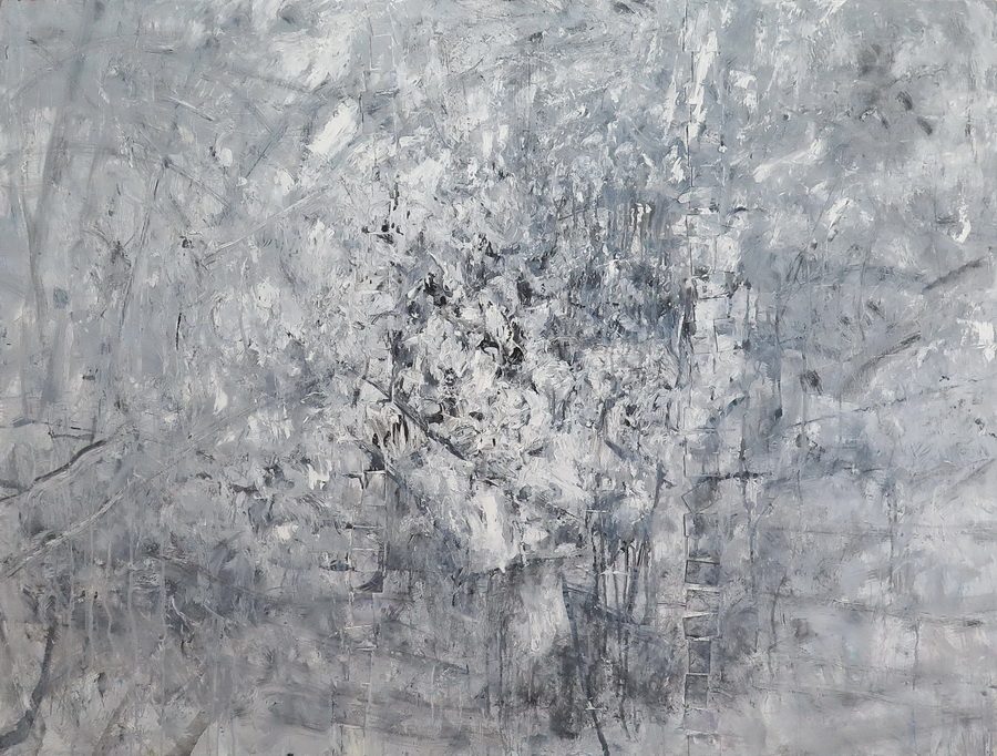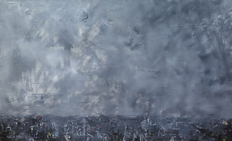 I dok većina kompozicija prikazuje trenutak neposredno nakon tragedije s uskovitlanim emocijama šoka i nevjerice, na slikama pronalazimo i rijetke, gotovo lirične kompozicije gdje aplicirani kružni oblici izgledaju nadrealno poput pahulja na dimnoj pozadini. Trenutak je to bolne tišine i strepnje nakon prvotnog šoka proživljenog događaja. Gradnja slike debelim nanosima sivih tonova koji prekrivaju predmete poput staklenih paleta i iskorištenih tuba boja ukazuju na transformaciju normalnog svijeta koji je nakon tragedije postao bezlična masa.