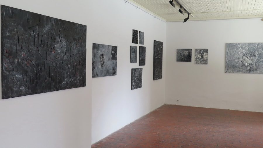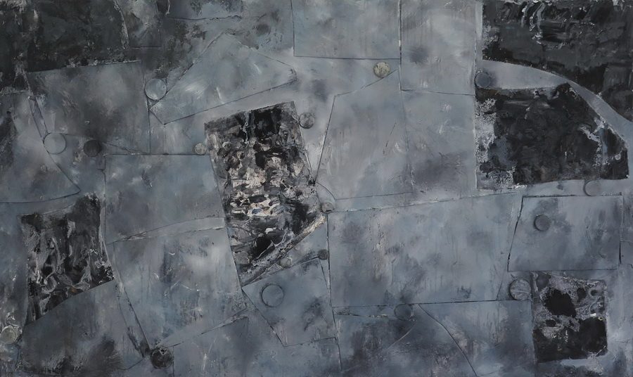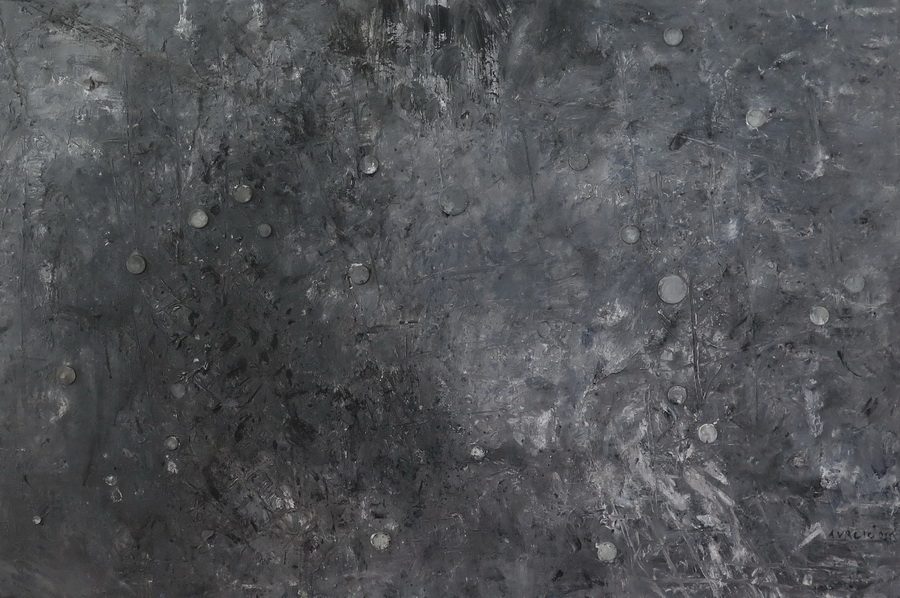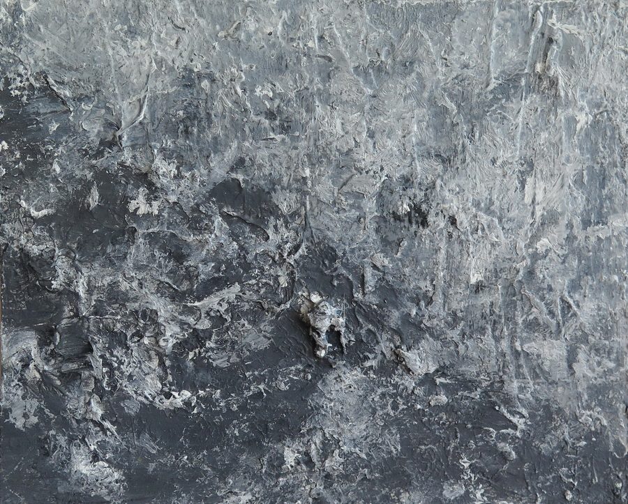 Na površinama slika prevladavaju akromatske boje dubokog crnila s povremenim naznakama izrazite bjeline uz široku paletu dominantnih sivih tonova. Tek pojedinačni izroni boje inkorporiranih predmeta daju naznaku iščezlog svijeta koji je nestao pod talogom pepela.