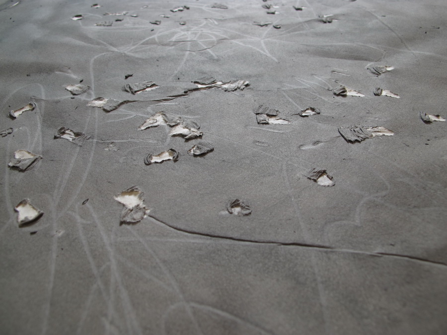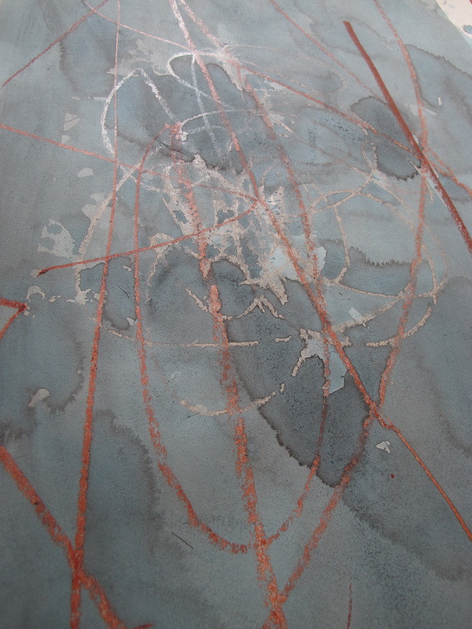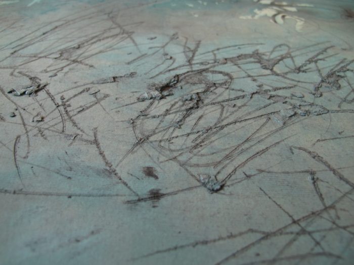 Crtež kao radnja koja prethodi skulpturi, ali i kao zasebno cjelovito djelo, naznačuje niz pretpostavki koje će biti prisutne i u staklu. Velika lokva vode predstavlja masu stakla unutar koje autor kistom, štapićima ili spužvom, koristeći tehnike drippinga, urezivanja i grebanja, stvara neposredan, krajnje spontani crtež.