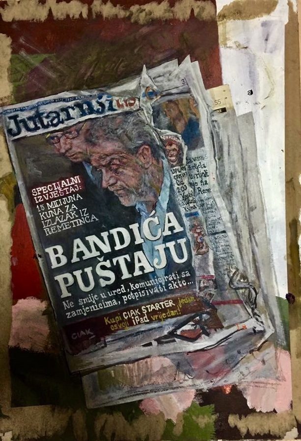 U drugom ciklusu Antonija Sakoman koristi naslovnice novina s dnevnim aktualnostima kao ključni motiv za ukazivanje na nepravilnosti u društvu. Koliko god se izolirali od okoline i događanja na društveno-političkoj sceni, informacije direktno ili posredno dopiru do nas i utječu na naš život. Upravo nemogućnost isključenja iz vlastite okoline čini bitnu odrednicu čovjekovog stvaralaštva i djelovanja, pa tako Antonija bilježi dnevna zbivanja i aktualne političke afere, no osobnom interpretacijom prikazanog sadržaja daje vlastiti komentar na društvenu situaciju transformirajući motiv u aktivan likovni govor pojedinca koji promišlja svoj politički kontekst. Reakcija na sadržaj, ili njezin izostanak, imaju podjednako važnu ulogu jer je upravo odustajanje od borbe, kritičkog promišljanja i aktivnog sudjelovanja u zajednici možda najjači komentar na situaciju u kojoj se pojedinac našao. Izostanak emocija ili bilokakve reakcije ukazuje na stanje čiste indiferentnosti koje poprima zastrašujuće razmjere u današnjem društvu.