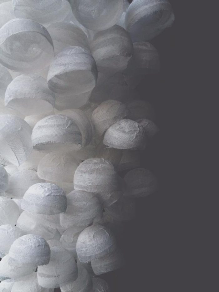 Osebujnost jedinki u radu Grožđe zamijenjena je nizanjem sličnih formi lišenih boja i podjednake veličine. U prvi plan dolazi tekstura materijala. Kupolasti oblici lake, prozirne tkanine rijetkog platnenog veza u radu Peruški stvaraju lirsku kompoziciju tišine. Reagirajući na podražaj lebdeća skulptura uklapa se u okolnu prirodu.