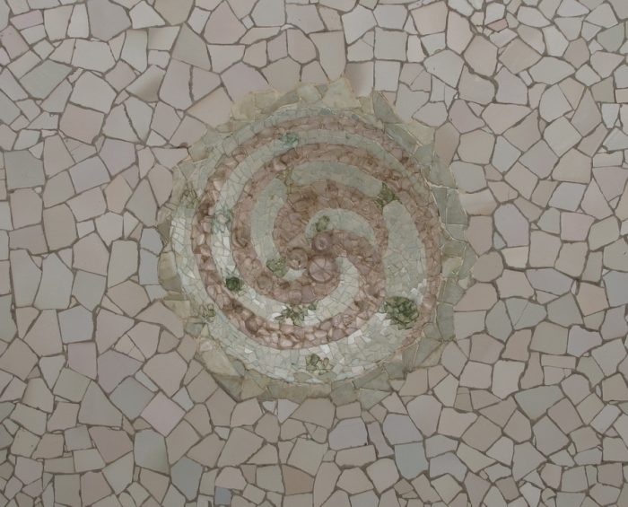 Pročelje je jednako impresivno kao i unutrašnjost, te je prekriveno keramikom u tehnici “trencadis”, što je katalonski izraz za mozaik napravljen komadićima razmrvljene keramike koju je Gaudí jako često koristio. Dekorativni i arhitektonski elementi poput vrata, dovratnika, doprozornika, lukova i bifora inspirirani su biljnim i životinjskim svijetom. Neki oponašaju geološke oblike stvorene snagom vode, dok drugi asociraju na organski svijet.