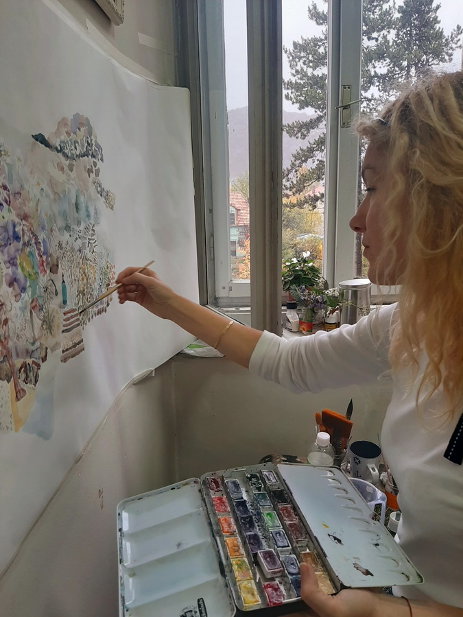 Moram s vama podijeliti jednu zanimljivu priču koja mi se dogodila u doba pandemije. Kada su u ožujku zatvorili općine i fakultete ostala sam bez papira i četkica za rad, jer mi je sve ostalo “zarobljeno” na Cetinju i nisam se mogla vratiti. Preko Instagrama sam sasvim slučajno otkrila galeriju iz Podgorice koja se zove Artica i naručila sam materijal. Kada je materijal stigao polako je započela i suradnja koja je iz poslovne prešla u prijateljsku, posebno kada sam saznala da je vlasnica galerije mlada umjetnica Diana Bracanović. Oduševilo me što je galerija otvorena za radove novih umjetnika kao i činjenica da surađujem s jednom ženom u umjetničkom svijetu koji nam baš i nije toliko naklonjen. Od tada, galerija Artica zastupa moje slike. Kao što sam vam rekla na početku intervjua, čak i u doba pandemije mogu se dogoditi lijepe stvari.
