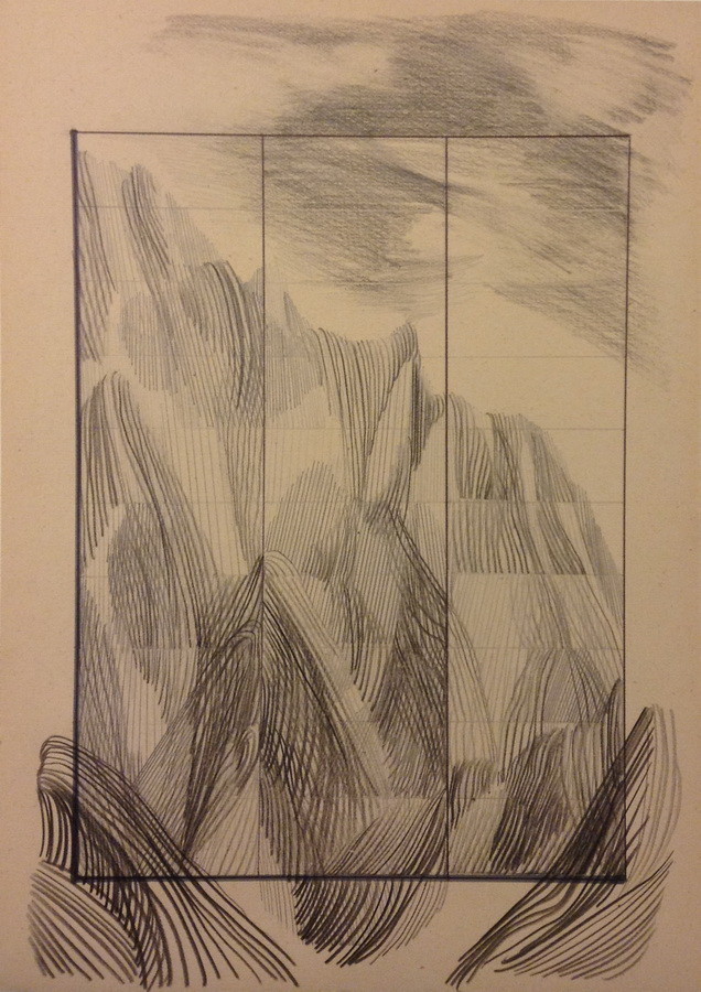 Ce Jian inspirirana stalnom čovjekovom željom za širenjem granica znanja i mogućnosti percepcije svijeta, unutar rastera linija oblikuje planine vodeći se ljudskom potrebom za artikuliranjem svijeta pomoću matematičkih formula. Mapiranjem planine ona preispituje navedene principe konstruiranjem vlastite stvarnosti unutar crteža. Istražujući različite mogućnosti percepcije, umjetnica pomoću ravnala, olovke i flomastera stvara model rešetke unutar kojeg gradi gustu strukturu paralelnih linija sličnih usmjerenja. Fasete gusto nanizanih linija određuju dinamičnost prikaza. Njihovim preklapanjem postiže se veći intenzitet svjetla i sjene kojim se definira struktura planine unutar piramidalne kompozicije. Glavno usmjerenje prema vrhu planine dodatno je naglašeno linijama plavog flomastera čime je definirana osnovna forma percepcije prikaza.