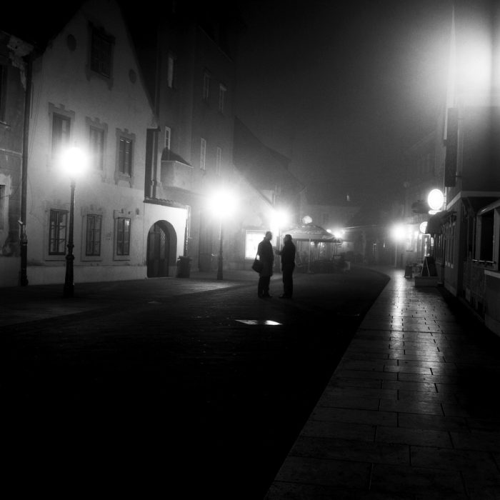 Samostalna izložba fotografija Damira Matijevića prikazuje Zagreb u vrijeme hladnih jesenskih i zimskih večeri. Noć često nosi simboliku mističnosti, samozatajnosti, nedorečenosti, opasnosti i intrige. Ona ovisno o prisutnom osvjetljenju otkriva ili tek naznačuje pojedine motive.