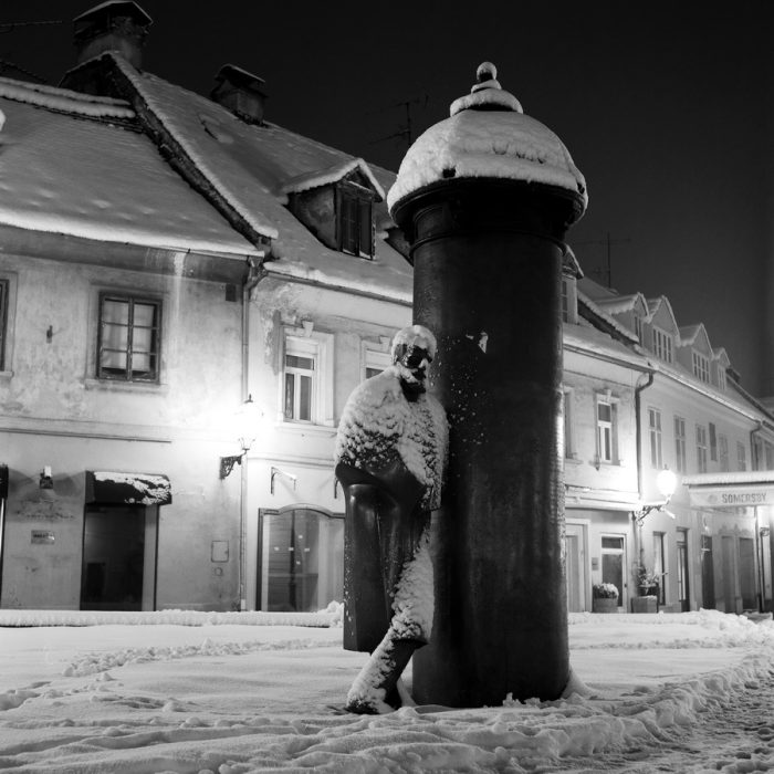 Katedrala kao metaznak Zagreba zabilježena je u vječnom procesu obnove pročelja i zvonika. Dolac lišen meteža i gužve koju tijekom dana stvaraju Zagrepčani kupujući svježe domaće namirnice kod kumica odaje posve drugačiji dojam od uobičajenog. Strossmayerovo šetalište prikazano je s fokusom na kip A.G. Matoša koji poziva posjetitelje da sjednu kraj njega i uživaju u panoramskom pogledu na Donji grad. Niz javnih skulptura koji uz Matoša čine sastavni dio šetnje gradom punktovi su ključnih križanja ili okupljališta građana. Šenoa na križanju Vlaške i Branjugove, kumica na tržnici Dolac, kip kralja Tomislava ispred Glavnog kolodvora fotografirani u ambijentu snježne idile ili sumorne magle dolaze do izražaja u nedostatku rojeva ljudi koji cirkuliraju na spomenutim lokacijama tijekom dana.