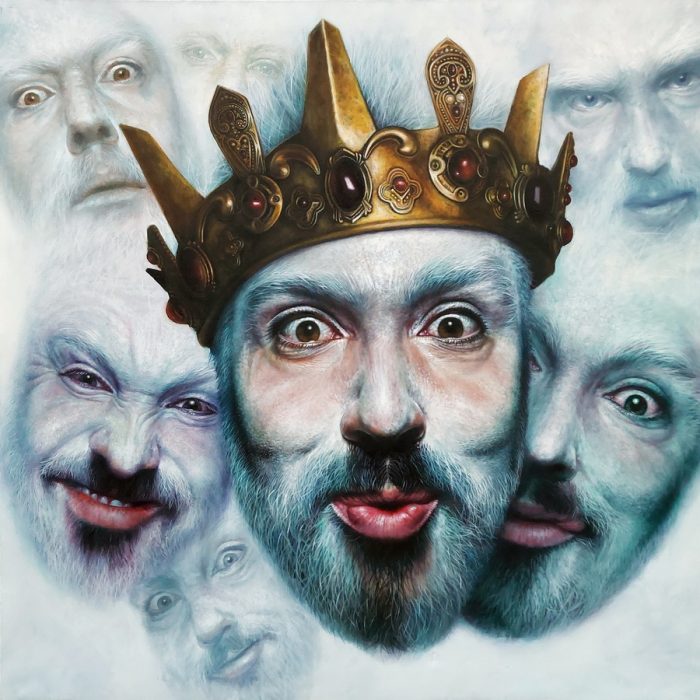 Stara narodna poslovica kaže kako je “spoznaja sebe početak mudrosti”, a spoznati sebe, te oblikovati pojam o sebi putem vlastitih misli i vjerovanja zahtijeva direktno okretanje k vlastitosti u cilju istraživanja sebe iznutra prema van. Jedan od rijetkih primjera autoportreta na ovoj izložbi je rad “First days of madness” koji svjedoči o procesu samospoznaje. Autoportret, koji se multiplicira dok glavni centralno pozicionirani lik s krunom na glavi prati niz drugih, manjih, nestajućih i nastajućih interpretacija s dijapazonom najrazličitijih izraza lica, progovara o nizu emocionalnih i duševnih stanja koje je pojedinac sposoban proći i proživjeti u izvanrednim okolnostima. Riječ je o najintimnijim spoznajama do kojih možemo dospjeti ponirući u dubine vlastitih misli, osjećaja i djelovanja, a prolazeći taj proces kroz komunikaciju sa samim sobom, ali i s modelima i njihovim osobnim pričama, Eugen Varzić doista slika život u njegovoj iskrenosti i ogoljenosti s ciljem izmještanja promatrača izvan vlastite komfor zone i navodeći ga na niz pitanja koja je i autor sâm sebi postavio, a odgovore je pronašao kroz proces stvaranja.