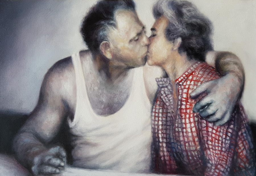 Zaokret se dogodio iz potrebe razbijanja kontinuiteta ciklusa gdje je sve ujednačeno i samim time sputano. Koncept ciklusa slika mi je postao dosadan. Svjestan sam da je davanje naziva “Different kinds of love (cunt)” automatski negiranje prethodno izrečenog o ciklusu, ali kada se vodim idejom da je svaka slika u biti koncept slika, da svaka slika može biti izložena neovisno o ciklusu, dobivam jedan ogromni prostor slobode tema i motiva. Kao mala pukotina koja je nastala i kroz koju će u sljedećem trenu probiti bujica i odnijeti sve ispred sebe. Teme su brutalne i univerzalne, kreću od vječnih, odnosno smrti i seksa, da bih se fokusirao i obrađivao sve između toga, u toj tenziji tjelesnosti i duhovnosti. Ako ima smrti ima i vjere, ako ima vjere ima i prevare, a ako ima novca ima i seksa, ako ima seksa, tu je politika, ako je politika ima i smrti i tako u krug. Zen kaosa. Radi se o većim formatima, o reduciranom broju modela koje slikam, za razliku od ciklusa “Prizivanje”, i o velikom oslobađanju mene kao autora. Započeo sam raditi intenzivno, a praktički prva slika iz ciklusa koju sam naslikao “Andragathia” već je uvrštena od strane Galerije Artelibre na važnu izložbu “Algo que mas realismo” u Zaragozi u Španjolskoj. Trenutno uživam u slikanju tog ciklusa, a to nije baš uobičajeno za mene.