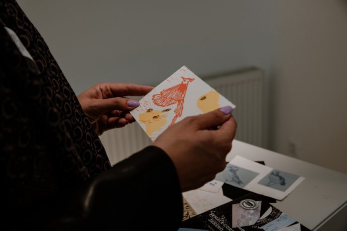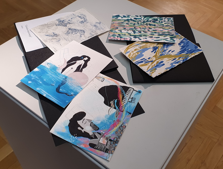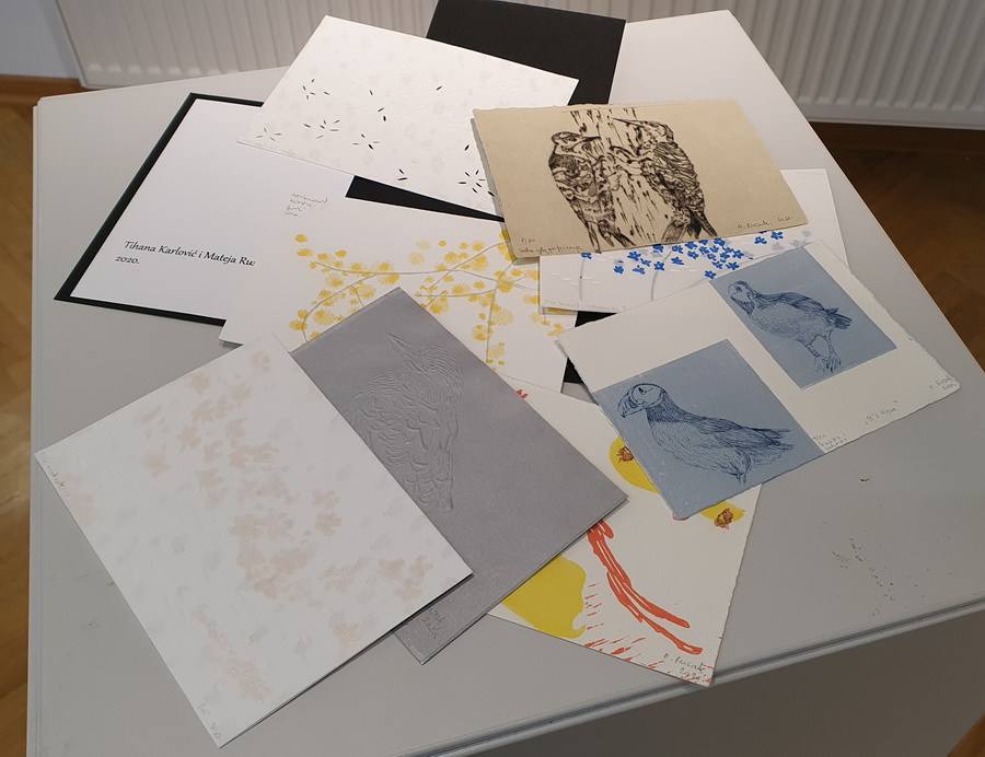 Kako se autorice projekta Tihana Karlović i Mateja Rusak dopisuju i s drugim umjetnicama, upravo promatrajući njihove radove dobivamo konkretan uvid u postojanost likovnog teksta, te odgovor na pitanje u kojoj mjeri i na koji način se on mijenja i varira ovisno s kime se umjetnice dopisuju. Prilikom svakog novog uparivanja, prvi poslani rad šalje impuls/poruku koja definira komunikaciju, a odgovor na njega potvrđuje ili potiče daljnju razradu započetog vizualnog razgovora. Sagledavajući sva izložena djela možemo pratiti prepoznatljive likovne rukopise pojedinih autorica, kod nekih i omiljene grafičke tehnike, dok je vrelo tema u potpunosti neograničeno. Izrazi naglašeno variraju od figurativnih, apstraktnih, ekspresivnih ili minimalističkih rješenja, dok se koloritska lepeza kreće od posve akromatskih varijacija pa sve do djela s izraženom bogatom paletom jarkih boja, a česte su i intervencije kolažem i perforacije papira. U analizi zasebnih dopisivanja primjetna je dosljednost kod određenog broja autorica, dok su druge spremne na eksperiment i istraživanje. Također je moguće pratiti gdje, kada i kako su autorice tijekom dopisivanja pronašle zajednički jezik, misaono se dotakle da bi potom svaka poentirala ono što je osobno prepoznala kao ključno u njihovoj korespondenciji. Kada bi ovu vrstu likovnog govora preveli u verbalni razgovor mogli bismo reći da interpretacije variraju od situacije u kojoj ostanemo maksimalno suzdržani ili tek suptilno naznačimo sugestiju i iznesemo prijedlog, pa sve do ozračja u kojem ulazimo u žustru raspravu. Tako se vizualno mijenjala i grafička korespondencija: od potpune individualnosti preko doticaja i/li refleksije u pojedinom području pa sve do naglašenog kontrasta između razmijenjenih grafičkih ostvarenja.