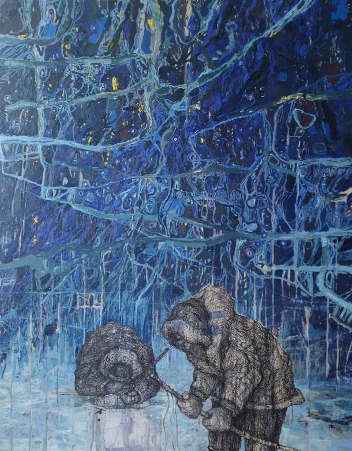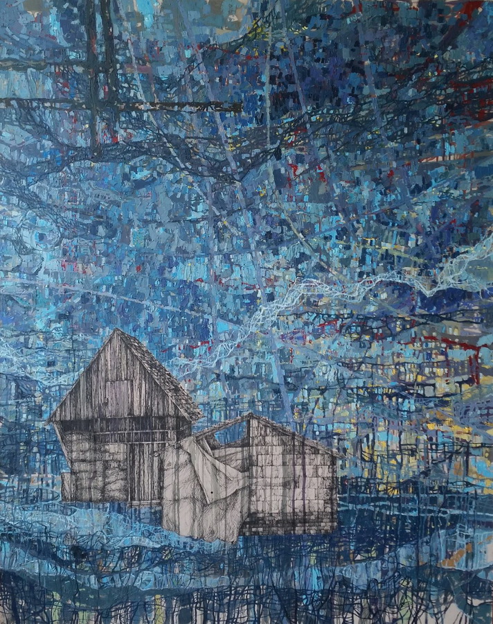 Iako danas najviše govorimo o iseljavanju radno sposobnih ljudi u inozemstvo, zaboravljamo kako su mnogi dijelovi Hrvatske već odavno opustošeni, posebice ruralni krajevi iz kojih su mladi iselili u veće gradove, a proizvodnja, poljoprivreda i cjelokupna infrastruktura u selima i manjim mjestima sustavno je godinama propadala dok nije u potpunosti uništena. O tom problemu govori rad Djedovina nekom drugom koji prikazuje napušteno selo u Istri. U fokusu je linijski precizno definirana djedovina s mnoštvom detalja koji ističu njezinu dotrajalost i oronulost. Djedovina je simbol prošlih generacija kada je dom bio mjesto okupljanja, druženja i kvalitetno provedenog vremena, dok je njezina oronulost metafora današnjeg stanja duha u kojem je čovjek postao ljuštura bez sadržaja. Praznina ruševine govori o praznini suvremenog čovjeka. Koliko god tehnološki i znanstveno napredovali, kao ljudska bića duhovno kopnimo i propadamo dok u potpunosti ne zaboravimo tko smo i zašto smo. Akromatski i minuciozno izvedena djedovina u tušu djeluje poput uspomene, dok irealne boje okolne prirode dodatno potenciraju glavni problem, ali i predstavljaju svojevrsni misaoni komentar na aktualnu situaciju. Boja koja daje “živost” okolnoj prirodi još više ističe prošlo svršeno vrijeme za djedovinu. Sličnom problematikom bavi se i slika Djedovina koja prikazuje štalu i ostavu smještenu u ruralnom dijelu srednje Bosne. Riječ je o strukturi koja postoji gotovo stotinu godina i koja je preživjela rat, ali mnogi su iselili pa se danas nema tko za nju brinuti. Za razliku od figurativnog krajolika na ranijem radu, pozadina Djedovine je u potpunosti apstraktna, te djeluje poput konglomeracije velikog grada odnosno foto snimke gusto naseljenog područja snimljene iz zraka. Svojevrsni je to povratak autorice samom izvorištu – apstrakciji koju ovaj put kombinira s figurativnim crtežom izvedenim u tušu. Cijela površina slike je titrajuća, dinamična i pulsirajuća s mnoštvo boja i detalja. Metafora je to kozmosa i aktualnog vremena, strke i kaosa koji je ključno obilježje svijeta u kojem živimo. Pastuozno nanešene boje, te različite silnice kretanja u krajnje zgusnutom prostoru u kontrastu su s preciznim i detaljnim crtežom u tušu koji daje težište slici. Crtež štale i ostave uravnotežuje i “smiruje” cijelu kompoziciju, ali i komplementarno nadopunjuje usitnjena zbivanja u gornjem dijelu slike.