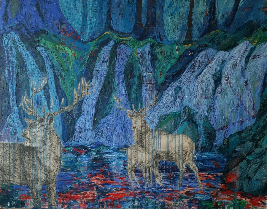 Osim arhitektonskih građevina koje ukazuju na neka davna vremena kada je čovjek živio povezan sa zajednicom i najbližima, te u kontaktu s prirodom, Gorana Težak otvara pitanje života same prirode koju danas zanemarujemo i sustavno uništavamo. U slikama Krajolik budućnosti 1 i Krajolik budućnosti 2 glavnu ulogu igra jelen kao autohtona šumska životinja naših krajeva. Autorica smješta jelene u svojevrsni hologramski krajolik s vodopadima odnosno u krajolik kojem ne pripadaju. Delikatan, minuciozan i krajnje detaljan crtež ukazuje na fragilnost životinja koje su na oprezu, zatečene sredinom u kojoj su se našle. Kontrira im ulje koje je pastuozno i žustro naneseno, a čiji curci prelaze preko crteža jelena simbolizirajući njihovo nestajanje. U radu Krajolik budućnosti 2 jelen je izveden crtežom iz jednog poteza gdje titrava energija linije daje jelenu snagu da parira krajoliku u kojem se našao. Iako je na prvi pogled jelen vraćen u svoje prirodno okruženje – šumu, stabla su tek naznačena bijelom bojom te djeluju poput odjeka nekog davnog vremena, dok iz pozadine izbijaju planovi boja koji asociraju na urbanu cjelinu. Kao da je u slici prikazan protok vremena od prvobitnog prirodnog okruženja pa sve do aktualne urbane sredine, dok je jelen jedina konstanta i nit poveznica.