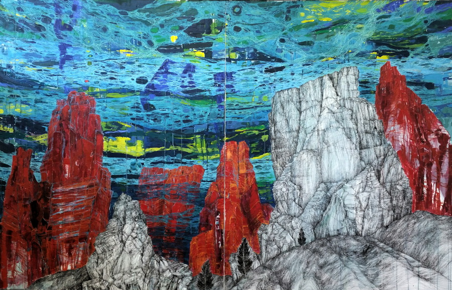Najvibrantnija i najživlja te dimenzijama najmonumentalnija jest svakako kompozicija Divovi s prikazom impresivnih Dolomita. Lišena prisustva čovjeka ili objekata nastalih čovjekovom rukom, slika predstavlja metaforu potpune slobode i suzvučja s prirodom. Spoj slikarskog i crtačkog očituje se u briljantnoj manifestaciji prirode koja istovremeno izaziva strahopoštovanje i divljenje. Boje su intenzivnije nego na ranijim radovima. Crtež i snažna crvena boja po prvi put su dominantnije od duboke plave boje. Čak i noćna plava postaje modra unoseći vedrinu i vizualno šireći prostor slike. Napokon je ostvarena migracija duha i to na mjesto gdje smo sami, spokojni i u nepatvorenom kontaktu s prirodom. Izraz je to maksimalnog poštovanja, veličajnosti snage i neprocjenjive ljepote i dobrobiti koju nam priroda daje, a naš duh osjeća.