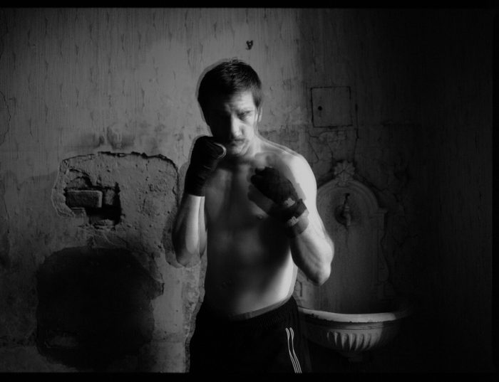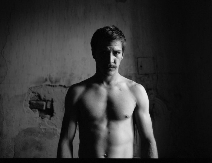 Osim nježnih suptilnih portreta i ženskih aktova Hrvoje Zalukar portretira muške likove u istom interijeru, ali gradeći posve drugačiji kontekst. Portret Borne Katalinića fotografiranog en face stavlja naglasak na ozbiljan i direktan pogled koji za razliku od ženskih likova govori o čistoj surovoj muškoj snazi pojačanoj prikazom razvijenog torza lika. Da je riječ o sportašu svjedoči drugi portret istog lika u pokretu s rukama u položaju spremnom za borbu. Prikazi sportaša lišeni su atmosferičnih maglovitih interijera prisutnih u portretima ženskih likova. Prostor prikazan bez ikakvih iluzija čini samo kulisu muškarca koji svojim karakterom dominira fotografijom.