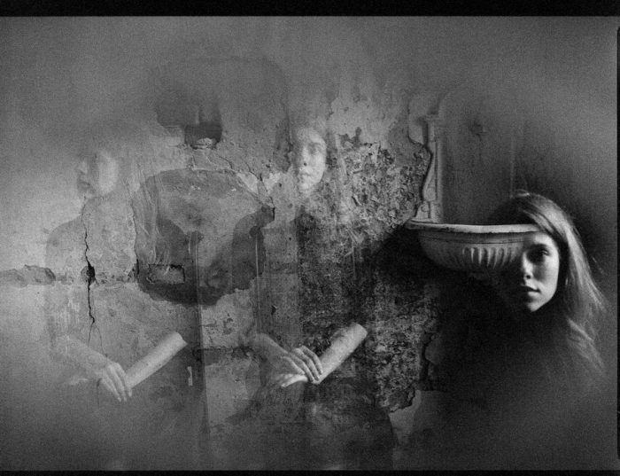Portret glumice Jelene Perčin smješten u derutni napušteni interijer gradi priču u direktnoj komunikaciji s fotografom, dok ostatak prostora nestaje u izmaglici. Crnina odjeće negira njezino tijelo dok naglasak ostaje na licu koje dijelom biva osvjetljeno prirodnim svijetlom, dok je druga strana u potpunoj sjeni dajući mističnost karakteru koji se ne otkriva u potpunosti. Dvostrukom ekspozicijom na drugom portretu Jelene Perčin stvara se iluzija sjećanja, ponavljanjem lika koji djeluje kao duh. Melankolična atmosfera odaje dojam nekog prošlog vremena prepunog osjećaja sjetnosti.