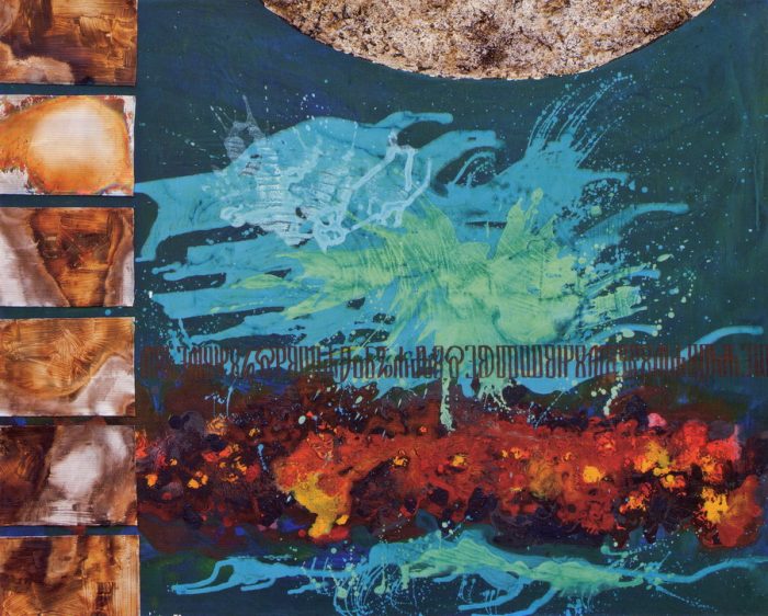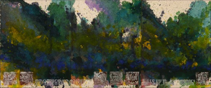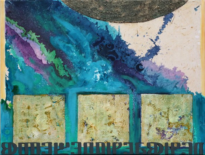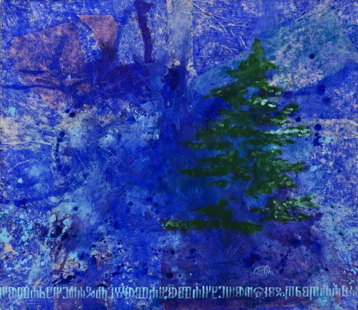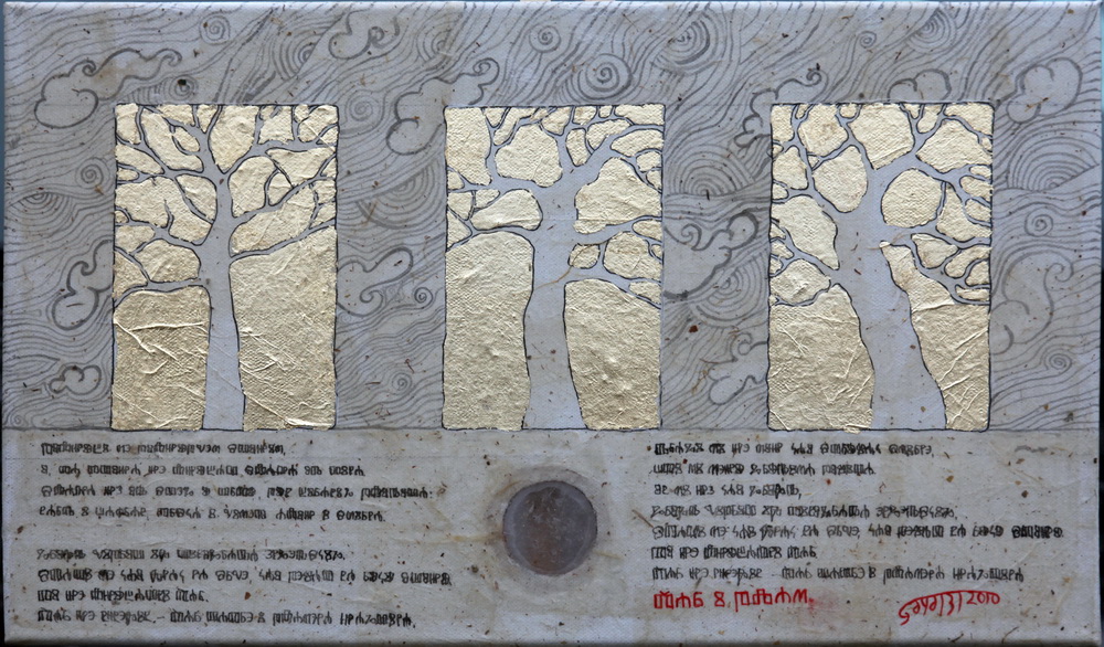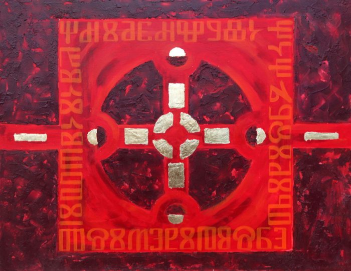 To je uglavnom par stihova ili jedna rečenica koja se izrodi iz osvještavanja emocija koje slikam. Zapravo pokušavam nadjenuti naziv svojoj slici, no stihovi obično budu predugački pa skraćivanjem stiha nastane naslov sveden na par riječi, ali onda cijeli stih napišem na djelu. Koristim se glagoljicom, jer ona jasno pokazuje moje porijeklo i moje korijene.