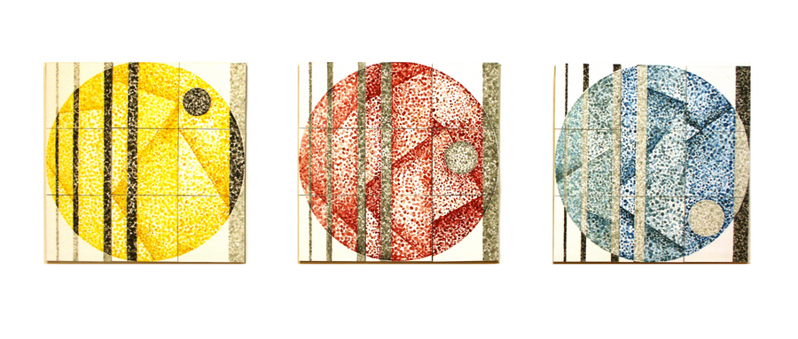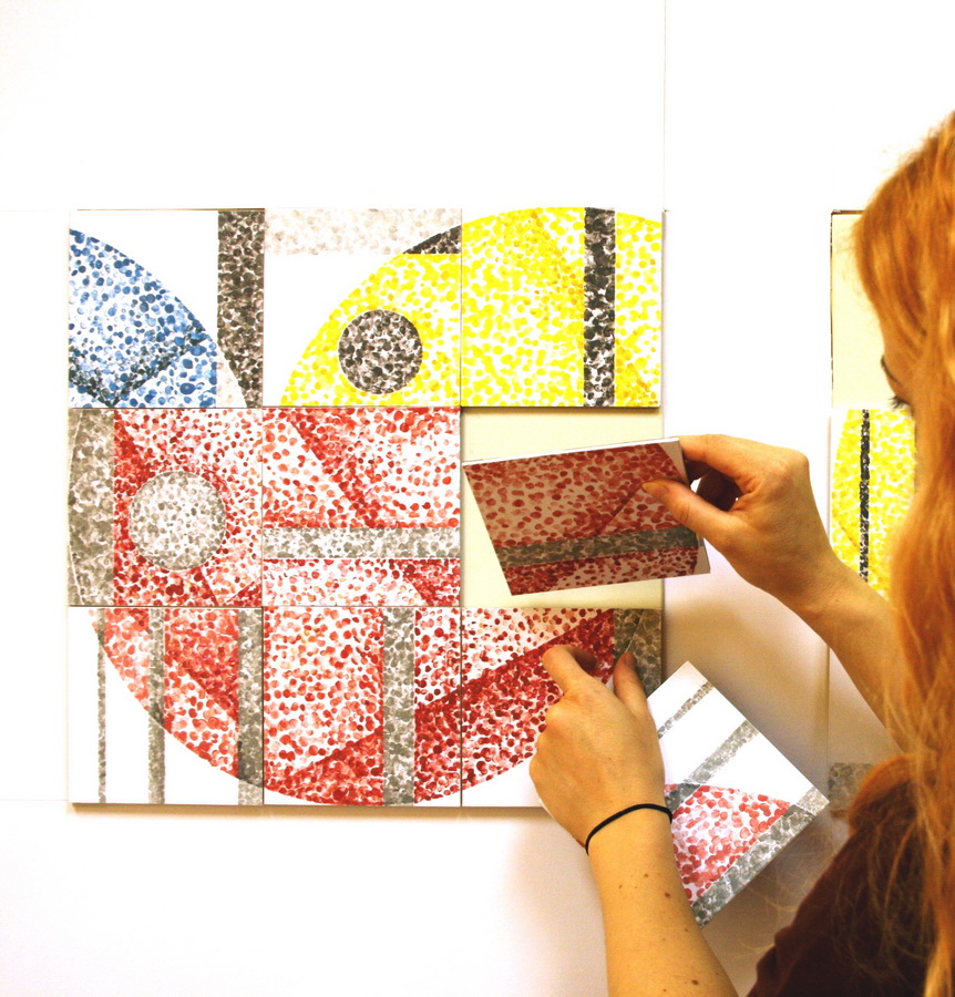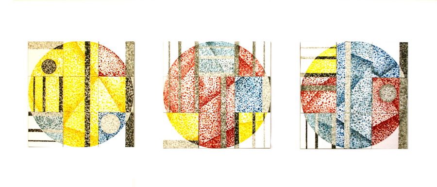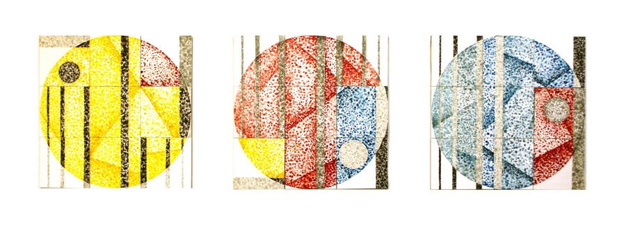 Unutar ciklusa pojedine serije radova dodatno razrađuju varijacije na temu kruga. Handoffset CMYK radovi sastavljeni od devet segmenata, izvedeni u grafičkoj tehnici linoreza i pečata definirani su jednom tematskom bojom: plavom, žutom, crnom ili crvenom. Podlogu čine kvadratni segmenti, dok krugovi predstavljaju akcente, ali ujedno i gradivne elemente obrisa kružnice čiju jezgru čini skup manjih krugova. Konačan karakter radu daje dominantna boja, dok ritam definiraju pečatom otisnuti manji krugovi koji čine strukturu kompozicije. Handoffset CMYK (C) i Handoffset CMYK (Y) zorno prikazuju kako djela sastavljena od istih gradivnih elemenata mogu rezultirati posve drugačijim ritmom i karakterom kompozicije.