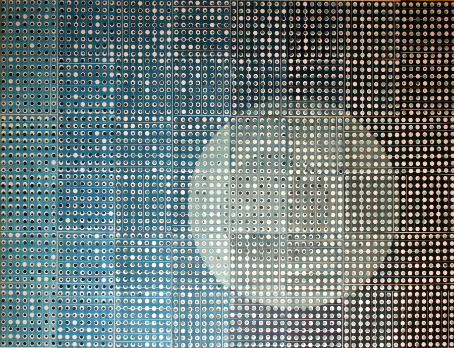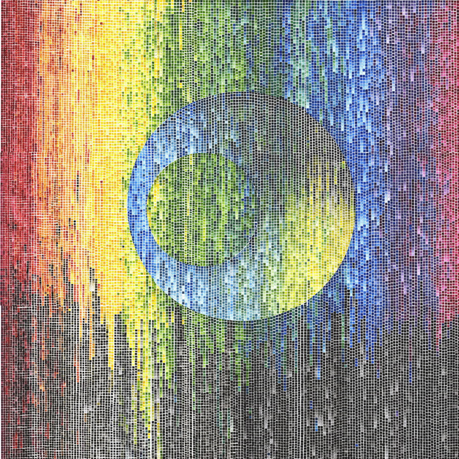 Sličan primjer pronalazimo u radu RGB koji utjelovljuje vrhunac strpljivosti, ustrajnosti i dosljednosti u izvedbi sâmog djela. Široka lepeza boja zastupljena je kroz ponavljajući element kvadrata kao osnovnog gradivnog elementa slike. Obojeni kvadrati okomitim nizanjem razrađuju široku paletu tonskih raspona unutar jedne boje, dok objedinjeni u kružnicu unutar veće kružnice prekidaju očekivani kontinuitet, te tonski oblikuju volumen unutar volumena. Prezentacija nevjerojatne snage repetitivnosti, gustoće, kolorita, podražaja, optičke iluzije i bogatstva likovnosti koncentrirana je u ovom radu. Iva Šarić je djelo RGB u potpunosti izradila ručno, kvadrat po kvadrat, upotrebom grafičkih pomagala poput matrica i šablona. Ručni princip izrade čini ga jedinstvenim i neponovljivim umjetničkim djelom koje bismo mogli okarakterizirati kao sliku izrađenu klasičnim i eksperimentalnim grafičkim postupcima.