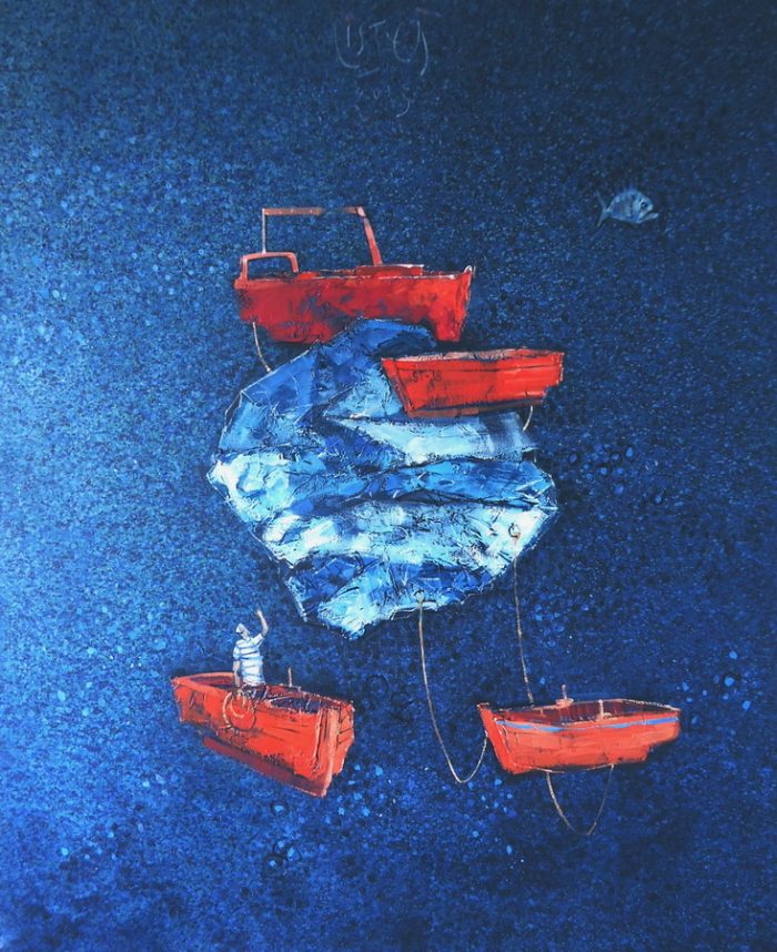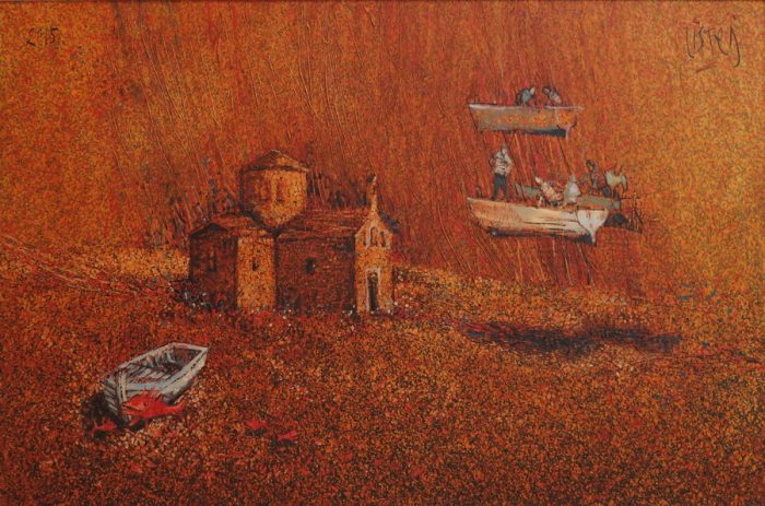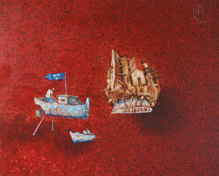 Lebdeće brodice, autohtone životinje, plodna polja i ribari čine unutarnji svijet akademskog slikara Ivana Listeša. Tradicija, običaji i način života u Dalmaciji utemeljen na blagodatima prirode polako nestaje i pada u zaborav. Transformiran u daleko sjećanje taj idilični svijet mora i plodnih polja obasjanih suncem povremeno navire iz podsvijesti unoseći nemir i sjetu u naš svakodnevni život.