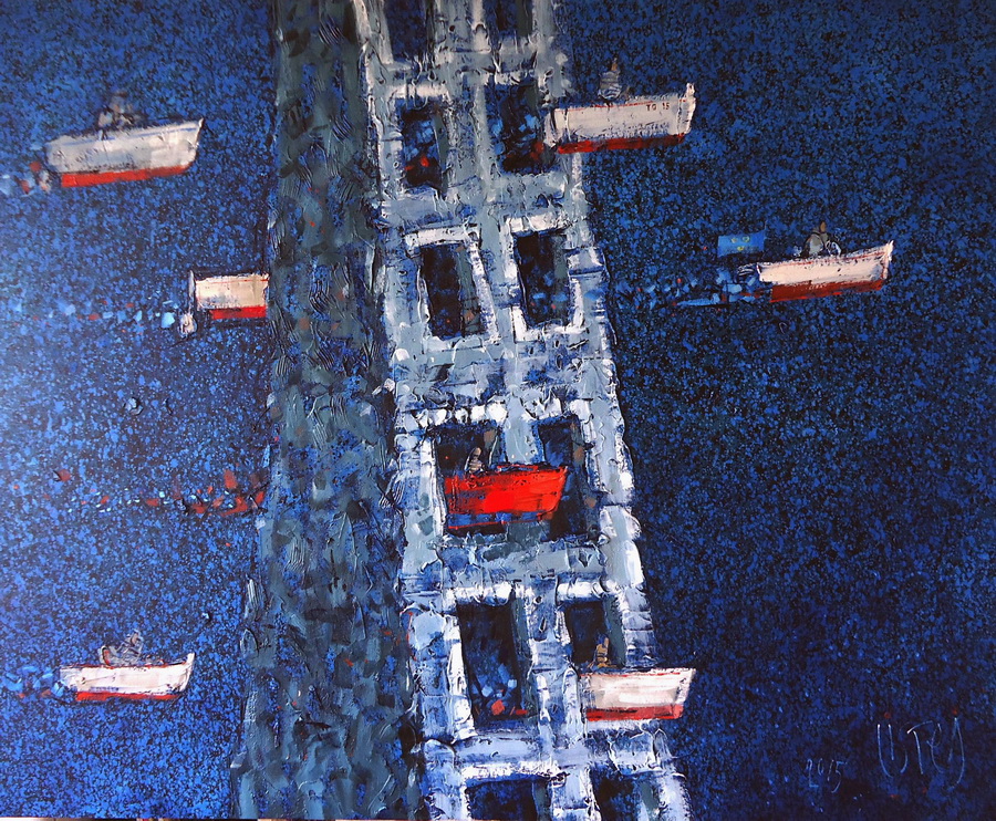 Ciklus recentnih radova Ivana Listeša ponajbolje objedinjuje rad Tišina, ujedno odabran i za naslovnicu kataloga. Usidrene brodice ukazuju na trenutak mira i tišine gdje duboko modro plavetnilo osigurava osjećaj spokoja. Izoliranost od vanjskog užurbanog i glasnog svijeta dopušta pojedincu da zastane na tren i suoči se sa samim sobom, sa svojim životom, sa svojom prošlošću, sadašnjim trenutkom, te odluči o koracima koji će definirati njegovu budućnost. Zaron ispod mora omogućuje nam susret s našim brodicama koje lebde u našem svemiru i ukazuju na naše, ponekad duboko zakopane i zaboravljene, ali i dalje prisutne vrijednosti u životu.