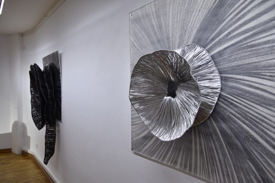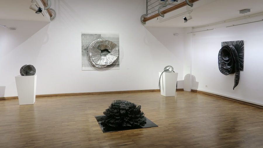 Dva najdominantnija ili međusobno najdistinktivnija rada u ciklusu – “Velika bijela rozeta” i “Ikebana” – utjelovljuju suprotnosti na kojima se bazira cijeli ciklus: crno-bijelo, oštro-meko, dvodimenzionalno-trodimenzionalno, sjajno-mat, grubo-glatko, privlačno-odbojno, sirovo-obrađeno, te plošno-reljefno. “Velika bijela rozeta”, osmišljena za pozicioniranje na zidu s jezgrom u razini očišta promatrača, izrađena je od ravnih gusto nanizanih prostornih linija aluminija čija obrisna linija definira spiralno gibanje koje vodi prema središtu skrivenom u sjeni. Jezgra rozete upija energiju i poziva na put u nepoznato. S druge strane, “Ikebana” izrađena od crnih savijenih niti čelika koje se radijalno šire od samog središta, formira bogato razvedenu strukturu smještenu na podlogu od crnog stakla. Središte ikebane nije ono koje skriva ili tek naznačuje, već ono koje emanira bogatstvo oblika i predstavlja izvor rađanja ideje.