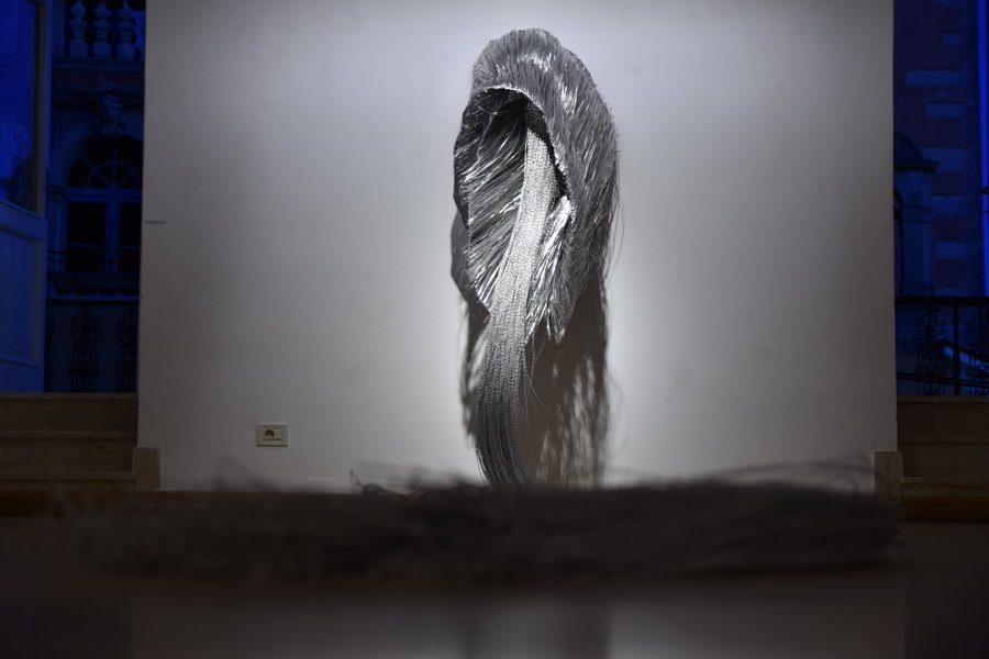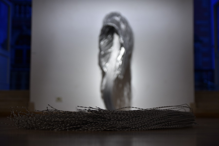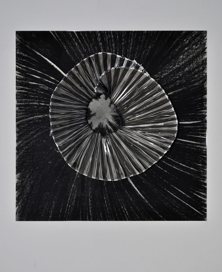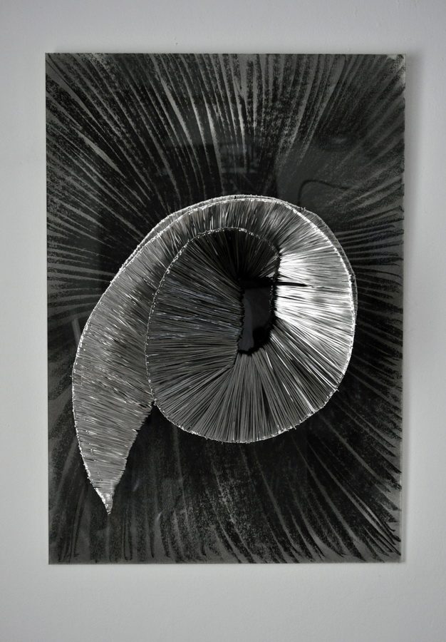 Korak dalje u razradi motiva istog oblikovnog polazišta očituje se u radu s dvostranom rozetom iz čijeg središta izvire slap metalnih niti. Čelične niti koje slobodno padaju niz postament rezultat su materijalizacije linija crteža u pastelu i njihovog sjedinjenja s gradivnim strukturalnim linijama rozeta.