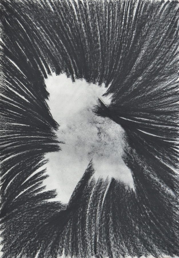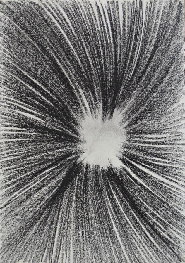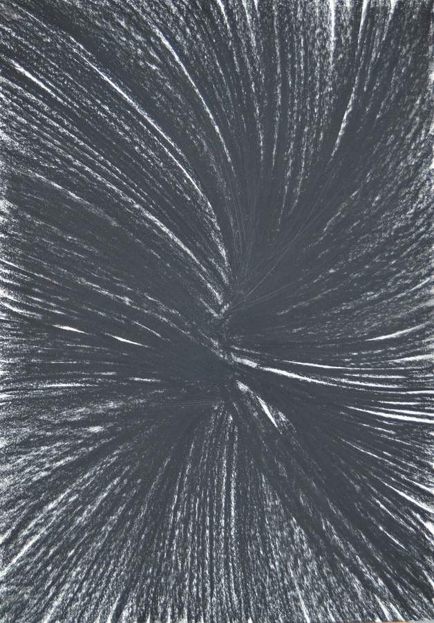 Poseban segment izložbe čine samostalni crteži u pastelu koji korespondiraju sa skulpturama u prostoru. Apstraktni crteži su visoko ritmizirani i predstavljaju čisti odraz autorove energije. Ivan Midžić središte kompozicije crteža namjerno ostavlja praznim, pri čemu sila same jezgre privlači pogled zahvaljujući zgusnutim zbivanjima oko nje. Takav princip gradnje kompozicije crtež zadržava u polju dominantno kružnih formi i centripetalnih gibanja, čime konotacija sadržaja ostaje ista kao i u radovima s rozetama.