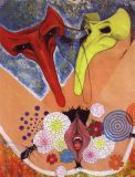 Alisa Ramić provokativno i direktno interpretira poziciju žene u društvu ilustrirajući vaginu u predimenziniranom obliku čineći ju matičnim fokusom slike. Dekorativna površina djela podsjeća na popartistički plakat naglašene plošnosti i snažnog kolorita. Niz simboličkih motiva, redom muških protagonista, te kameleona koji razmišlja o seksualnom činu okruženi su gusto naslikanim šarolikim cvijećem – čestim motivom koji se stereotipno veže uz ženski spol. Isti je prisutan i u kosi depersonalizirane žene čija bjelina očiju lišava promatrača mogućnosti iščitavanja njezine duše i karaktera. Nagog tijela u ležećem položaju protagonistica s cvijećem u kosi i cigaretom u ustima aludira na djecu cvijeća i seksualne slobode, ali i posljedice seksualiziranog svijeta. Vagina postaje simbol žene. Ona je središte zbivanja, nedostižni cilj i izazov svakom muškarcu. Nebitnost njezine duše naznačena je kompozicijskim postavljanjem svih ključnih motiva oko preuveličane vagine. Zloslutne maske u obliku falusa svjedoče o nevažnosti karaktera muških pojedinaca, personalizacija je potpuno nebitna, sve se svodi na seksualni čin – on postaje opsesija.