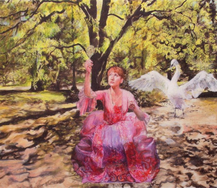 Leda Lebarić na suptilniji, indirektan način tumači poziciju žene u današnjem svijetu. Kroz romantične interpretacije godišnjih doba u formi autoportreta smještenih u prirodu, autorica ilustrira razvoj ženskog lika od podčinjenog položaja na slici Proljeće do osviještenja i neovisnosti na slici Jesen. Mitološka scena spartanske kraljice Lede koju je Zeus zaveo u obličju labuda poslužila je kao alegorija žene koja biva izmanipulirana zavodljivom ljubavnom igrom muškarca u kojoj ona postaje objekt muškarčeve žudnje. Prikazana u raskošnoj haljini usred šume djeluje poput crtice iz romantične kostimirane priče iz XVIII. stoljeća gdje mlada naivna djevojka čeka svog princa. Potpuna suprotnost romantičnoj sceni interpretacija je jeseni kroz još jedan autoportret, ovaj put smješten u interijer boemskog kafića. Ženski lik u izazovno kratkoj suknji i prozirnoj čipkastoj majici sjedi zamišljeno gledajući u pod izolirajući se pritom od ostatka svijeta. Žena više nije ovisna o svom muškarcu, ona postaje svjesna vremena i prostora u kojem živi i preuzima vlastitu sudbinu u svoje ruke.