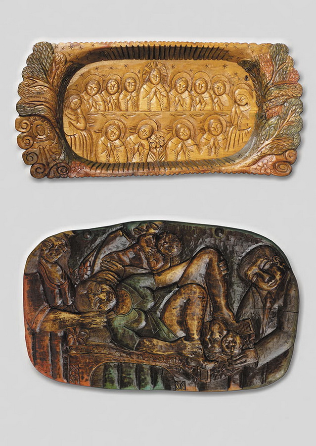 Više od pedeset godina Katarina Parađ-Vojković predano stvara, oblikuje i izlaže svoje prepoznatljive drvene skulpture nastale kao rezultat emotivne sublimacije svijeta oko sebe. Kao jedna od najpoznatijih naivnih kiparica danas, Katarina Parađ-Vojković od najranijeg je djetinjstva iskazivala interes za umjetničkim izričajem. Počela je s izradom lutki od blata, a presudan je bio nauk u ateljeu obitelji Kičin gdje se upoznala s radom poznatog keramičara Milana Kičina i skulpturama Milanovog oca Stjepana Kičina. Kontinuiranim radom, njegujući pritom izvornost doživljaja, Katarina Parađ-Vojković brzo je pronašla vlastiti rukopis koji i dan danas prati svježina i vitalnost u govoru oblika. Drvo je oduvijek bilo njezin prvi i jedini odabir. Ono predstavlja neprekinutu vezu s prirodom i uči čovjeka kako izraziti vlastitu energiju. Statično i meko, može se rezati u najslobodnijim formama, a pritom zadržava vitalnost i plemenitost linije, plohe i oblikovanog volumena. Matko Peić je istaknuo kako drvo ima “ukočenu strukturu koja pomaže kiparu da donese motive koje karakterizira sabrano ili uzvišeno držanje te dade izraz kojem je osnova zaustavljanje crta, ploha i volumena u čvrstu, nepokolebljivu cjelinu kipa”.[1] Upravo zato je drvo savršen medij za izraz u radu Katarine Parađ-Vojković. Ona svoj čvrsti odnos prema moralnim vrijednostima utkiva u toplinu izrezbarenog i meko oblikovanog drveta koje svojom naglašenom vertikalom stremi prema nebu i duhovnim bogatstvima. Izbor radova iz bogatog opusa Katarine Parađ-Vojković ukazuje na raznolikost tema i sadržaja kojima se autorica posvetila u svom djelovanju.