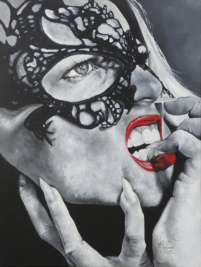 Problematizirajući jednu od mnogobrojnih tabu tema Katarina Vojković uvodi promatrača u mnogima nepoznati svijet ukazujući pritom na njegove karakteristike, mogućnosti te brojne čari i ljepote. Ona namjerno ne donosi konačnu odluku, stav ili mišljenje već otvara vrata, uvodi promatrača i prepušta ga da sâm donese zaključak na temelju viđenog, percipiranog i doživljenog. Pritom umjetnica daje mogućnost rušenja predrasuda nastalih na strahu i neznanju te pruža svjež, nov i drugačiji pogled ne glorificirajući već prikazujući jednu od brojnih mogućnosti međuljudskog odnosa. Naglasak je na interakciji, tjelesnosti, senzualnosti i žudnji izraženoj kroz fokusiran pogled partnera, uzdah, zagrljaj, intenzitet s kojim je ruka obuhvatila tijelo, povjerenje koje osoba ima dok se prepušta u naručju partnera. Krvavo crvena boja preuzima funkciju podloge u radu s prikazom izvijenog nagog ženskog tijela koje dominira cijelim prostorom slike. Pozadinska boja zajedno s crnim čizmama još više potencira bjelinu i volumen senzualnog ženskog tijela. Promatrajući cjelokupan ciklus razvidno je kako autorica daje umjetnički prikaz ljepote ljudskog tijela, te posebnosti i individualnosti jedne supkulture viđene i percipirane na jedinstven način. Iako nevezan uz samu temu, rad “The most beautiful suicide” koloritski i izražajno se nadovezuje na raniji ciklus gdje dubinski iščitavamo kako se ljepota može pronaći u najbizarnijim trenucima. Sve što je neobično pobuđuje zanimanje. Ljudi koji svojim ekstravagantnim izgledom ili ponašanjem privlače pažnju zapravo iza napadne fasade često skrivaju vlastite nesigurnosti ili strahove. Lišena predrasuda i s čistom znatiželjom Katarina Vojković pronalazi ljepotu u neobičnom, slavi različitost i afirmira posebnosti supkulture interpretirane u ciklusu slika objedinjujući emotivni doživljaj i estetsko iskustvo.
