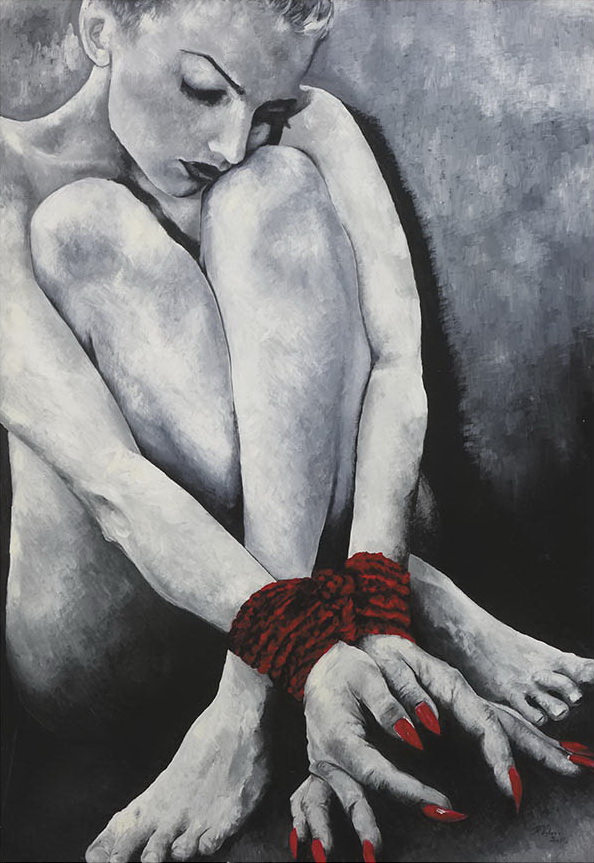 Slike se kreću od krajnje akromatskih prikaza pa do djela s uplivom crvene boje koja akcentuira tek pojedini element na slici kao simbol žudnje, strasti, energije i seksualnosti. Naglasak je na interakciji prikazanih likova. Neverbalna komunikacija izražena je tonski oblikovanim tijelima čiji položaj i gesta (zagrljaj, stisak) potvrđuje privlačnost, intenzitet i povezanost između aktera. Elementi BDSM-a (bič, lateks čizme s visokim potpeticama, uže) inkorporirani su u pojedini prizor i doprinose intenzitetu izričaja. Autorica karakter rada gradi osebujnim kadriranjem pri čemu osobe nisu nužno prikazane u cijelosti već je fokus stavljen na suodnos uključenih strana poput zagrljaja ili odabira prikaza krupnog kadra snažnih šaka koje drže rekvizit – bič, a naglašena je spremnost osobe na djelovanje. Posebno se ističe dijagonala sklupčanog ženskog nagog tijela čija bjelina kože i tanka obrisna linija naglašavaju senzualnost i tankoćutnost dok crvenilo dugih noktiju na rukama privezanih crvenim užetom slijedi tematsku odrednicu ciklusa.