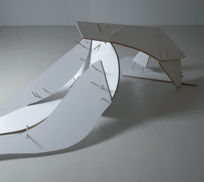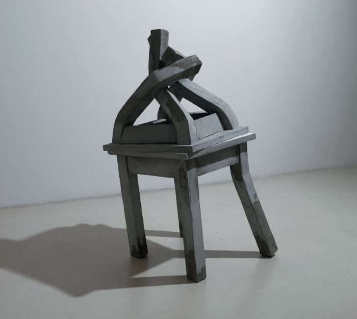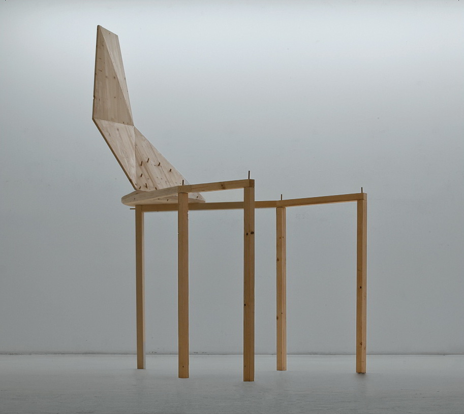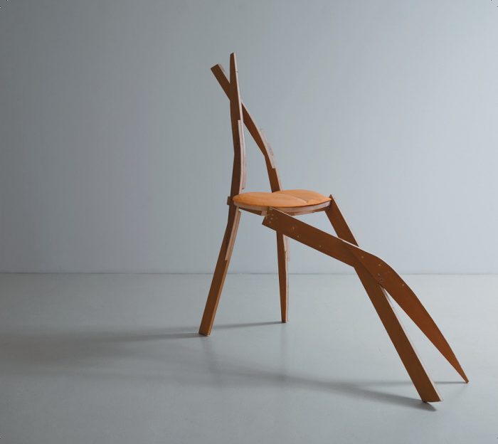 Sklonost otvaranju i poništenju kiparske mase te važnost unutarnjeg prostora skulpture ponajbolje je dočarana djelom S naslovom, gdje opet imamo poigravanje riječi i aluzije onoga što je u samoj skulpturi istaknuto – naslon. Naglašena konstrukcija i struktura djela očituje se u ravnoteži geometrijskih i zaobljenih linija koje stvaraju dojam gipkosti i lakoće monumentalne drvene strukture u kojoj prostor postaje esencijalni dio skulpture.
