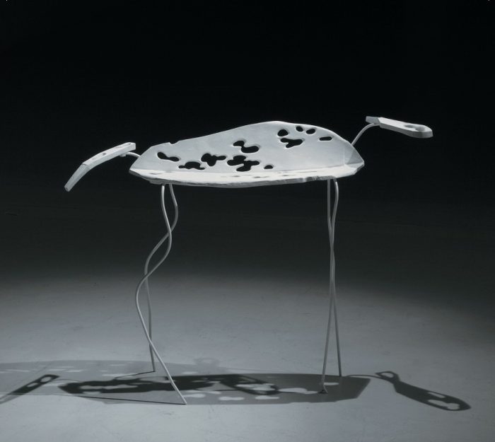 Bogatstvo novoga kipareva ciklusa očituje se u lišenosti jednostranog iščitavanja izloženih eksponata. Svako djelo može se interpretirati na individualan način – angažirano ili estetski, pozitivno ili negativno, inspirativno ili indikativno – ovisno o promatraču, njegovu pristupu i karakteru. Ljupko djelo Vrtna garnitura, oblikovano u akrilnoj smoli i željezu, iskače iz cjelokupnoga toka misli i dokazuje lucidnost, slobodu, optimizam, vedrinu i širinu umjetnikova pogleda. Na tankim fragilnim nožicama nalazi se prošupljena razvedena forma organskih oblika koja asocira na dekorativnost bogata vrta. Šupljine u formi moguće je interpretirati na razne načine – kao dekorativne organske oblike, kao napukline ili kao izjedeno lišće nagrižene prirode.