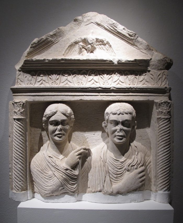 Posljednji dio izložbe posvećen je temi nadgrobne umjetnosti. Sarkofazi čije ime dolazi od latiniziranoga grčkog izraza sarcophagus, što znači „kamen koji jede meso“, uvozili su se iz velikih atenskih i rimskih radionica specijaliziranih za izradu kipova božanstava i careva. Često su bili dovršavani i ukrašavani u domaćim radionicama, a jedan od najvećih centara bio je u Saloni. Među najljepše stele pripadaju portretne stele, gdje arhitektonski elementi oponašaju arhitekturu edikule odnosno pročelje maloga hrama koji uokviruje nišu predviđenu za reljefno prikazana poprsja vlasnika, često bračnoga para, ali i za natpise.