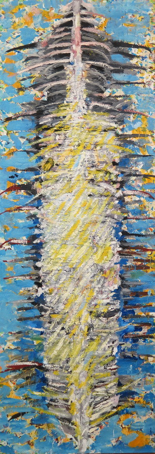 Okomito gibanje nastavlja se i u radu “Vertikala”. Prikaz predimenzioniranog crva vuče korijene iz fosiliziranih pejzaža iščezlog geološkog svijeta prisutnih na uljima nastalima sredinom 70-tih godina prošlog stoljeća.