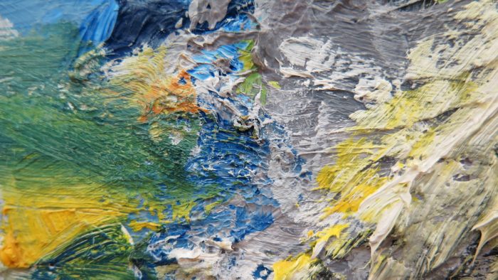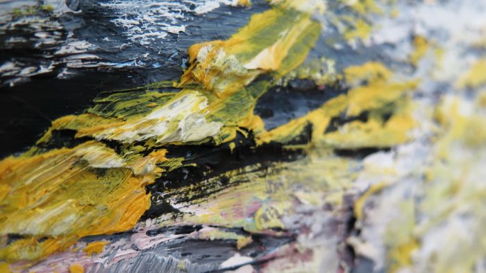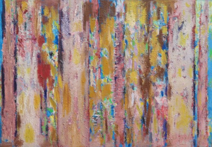 “Mi smo samo sloj zemlje u kojem se skrivaju naše nepoznate misli i neispunjene želje”, komentar je autora kojim potvrđuje svoju neprikosnovenu i duboku povezanost s prirodom, o čemu svjedoči i vrlo čest motiv šume, na ovoj izložbi zastupljen pejzažima “Jesen” i “Šuma”. Jesen izražena paletom toplih bogatih nijansi smeđe, crvene i zlatne boje iskazuje unutarnju bit slike, neovisnu o svom uzoru iz prirode, dok motiv šume poetičnom i suptilnom ekspresijom ljudskih osjećaja i strasti oblikuje lirsku apstrakciju života.