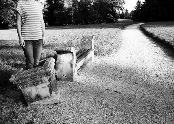 Nekoliko fotografija snimljenih u parku stavlja naglasak na zaboravljeni odnos čovjeka s prirodom. Užurbani svijet ustrojen na premisama kontinuirane konkurencije i natjecanja ne ostavlja čovjeku previše slobodnog vremena kako bi obnovio svoj um i tijelo. Fotografije iz prirode usmjeravaju pažnju na zaboravljeni duhovni aspekt ljudskog života, poniranje pojedinca u svoju dubinu i preispitivanje smisla života. Smještanje ljudskog lika unutar kamenog ukrasnog elementa simbolizira ograničenost kretanja, odnosno ograničenost mogućnosti za realizaciju u našoj zemlji što u krajnjem slučaju dovodi i do ograničavanja osobnih sloboda.