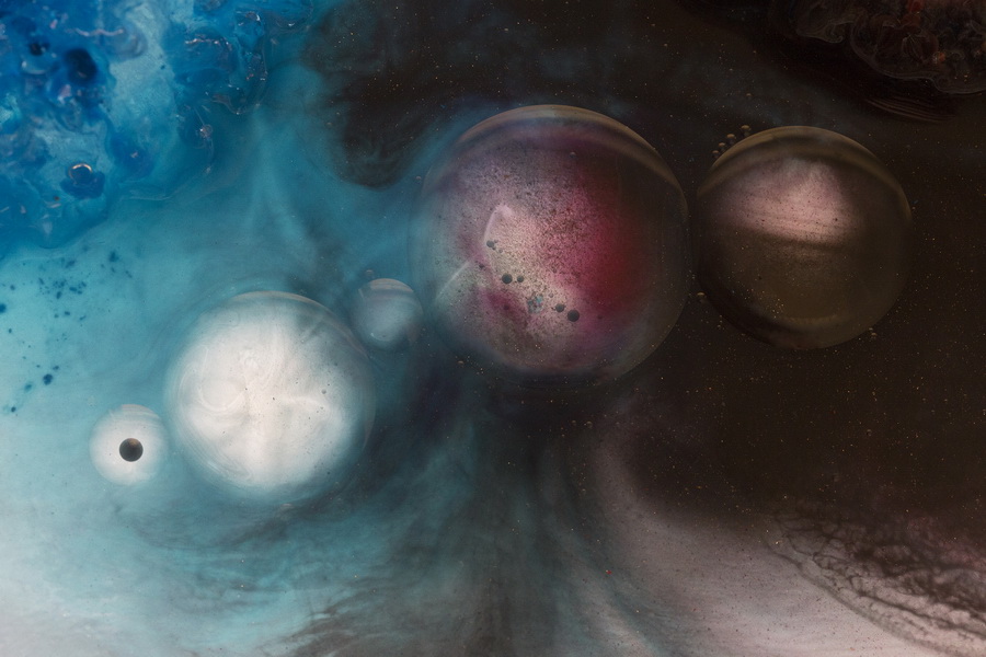 Ova serija fotografija drugačija je od svega što sam do sada radila. Započeta je prije par godina potpuno spontano, neplanski, gotovo nesvjesno. Motivirala me znatiželja, a vodila intuicija. Nisam znala što točno radim, ali uzbuđenje koje sam osjećala govorilo mi je da nastavim. Upornost je hranio čisti užitak stvaranja fotografija „iz ničega“, tj. iz vode, boje i drugih tekućina koje su mi se našle pod rukom. Sve sam fotografije snimala kod kuće, u kuhinjskoj staklenoj zdjeli dimenzija 20×30 centimetara, uz prirodno svjetlo s prozora i svjetlo male stolne lampe. Photoshop sam koristila samo za prebacivanje fotografija iz raw formata. Uživala sam u otkrivanju nepredvidljivih i nestalnih formi nastalih dodirom različitih tekućina. Zamišljala sam ih kao nove planete u prostranstvu Svemira. Maštala sam o rađanju zvijezda i stvaranju novih (boljih) svjetova. Oduševljavalo me to kako malo treba da te mašta odvede miljama daleko, a da se ne pomakneš iz svoje sobe. Tako je i nastao radni naziv ciklusa (koji je i ostao) „Drugi svjetovi“. Iako te fotografije izgledaju kao apstraktni prikaz boja i oblika, za mene one predstavljaju potragu za širim obzorima, nesputanim prostorima koji prelaze granicu mjesta na kojemu se fizički nalazimo i zalaze u beskonačan prostor uma. Stvaranje ovih fotografija bilo je moje putovanje u slobodu, u otvoreni tok čistih ideja.
