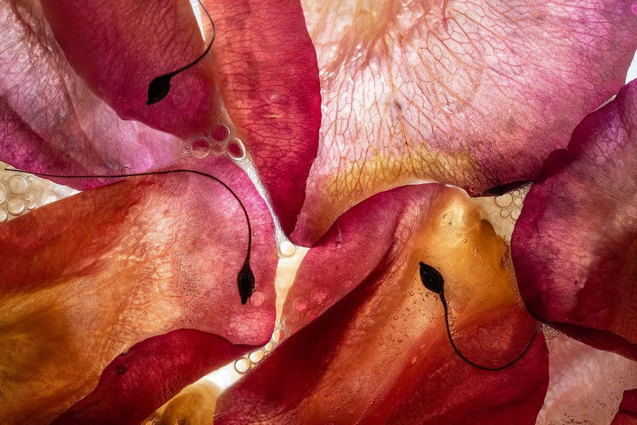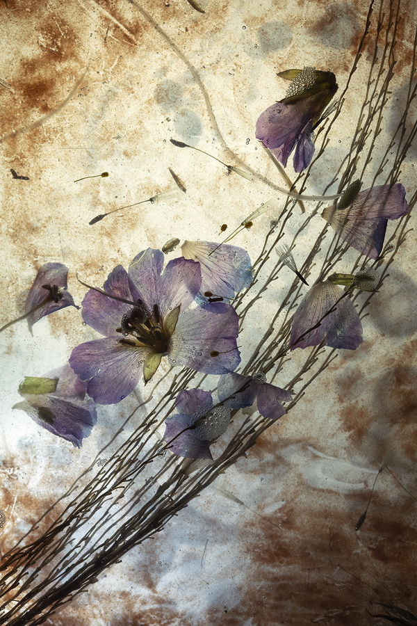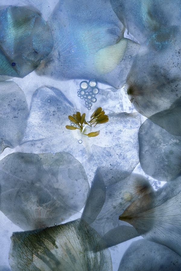 Seriju „Floating Garden“ započela sam prošlo ljeto. Sve je krenulo od jedne ruže koju je moja kćer dobila za svoj osamnaesti rođendan. Ta ruža potaknula me na razmišljanje o mladosti, ljepoti, prolaznosti… Željela sam ju nekako sačuvati od propadanja pa sam ju, bez puno planiranja i razmišljanja, stavila u vodu i zaledila. Nakon nekog vremena došla mi je ideja kako ju snimiti da naglasim nježnu strukturu latica i zadržim prirodnu boju. Osim ružinih latica, počela sam eksperimentirati i s drugim cvijećem, lišćem, grančicama, travkama, sjemenkama – svime što bih našla u svome vrtu ili vrtu prijatelja kojima smo došli u posjet ili uz put kad šećem s psom… Kod samog snimanja puno pažnje posvećujem osvjetljenju te kompoziciji, oblicima u kadru, teksturama i boji. Trenutno, svaki slobodni trenutak posvećujem radu na ovoj seriji. Puštam ju da raste i razvija se…