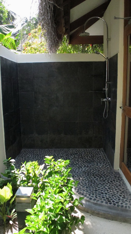 Svaki resort ima individualiziranu ponudu smještaja i sadržaja. Sve o čemu ćete dalje u tekstu moći čitati odnosi se na otok Kuramathi, jer nismo imali novaca da obiđemo više resorta (ali kad osvojim jackpot…). U okviru ponude smještaja u svim resortima vjerojatno su najpopularnije vile na vodi. To je ujedno i najskuplji oblik smještaja, za kojim nismo posebno patili, pa čak i da smo imali novaca, to ne bi bio naš prvi izbor. Odabrali smo bungalov na plaži koji se ispostavio kao dobitna kombinacija lako dostupne plaže, ali i privatnog prostora na otvorenom, jer je terasa bungalova zakrivena bujnim zelenilom od pogleda šetača. Bungalovi od 70 m2 vrlo su lijepo dizajnirani s naglašenim tropskim karakterom. Izgrađeni većinom od drva i slame nisu nimalo pretenciozni, ali su dovoljno posebni i lijepo uređeni da se osjećate opušteno i ugodno boraveći u prostoru. Najbolji dio je svakako tuš na otvorenom koji se nalazi u mini dvorištu s biljkama u zadnjem dijelu bungalova.