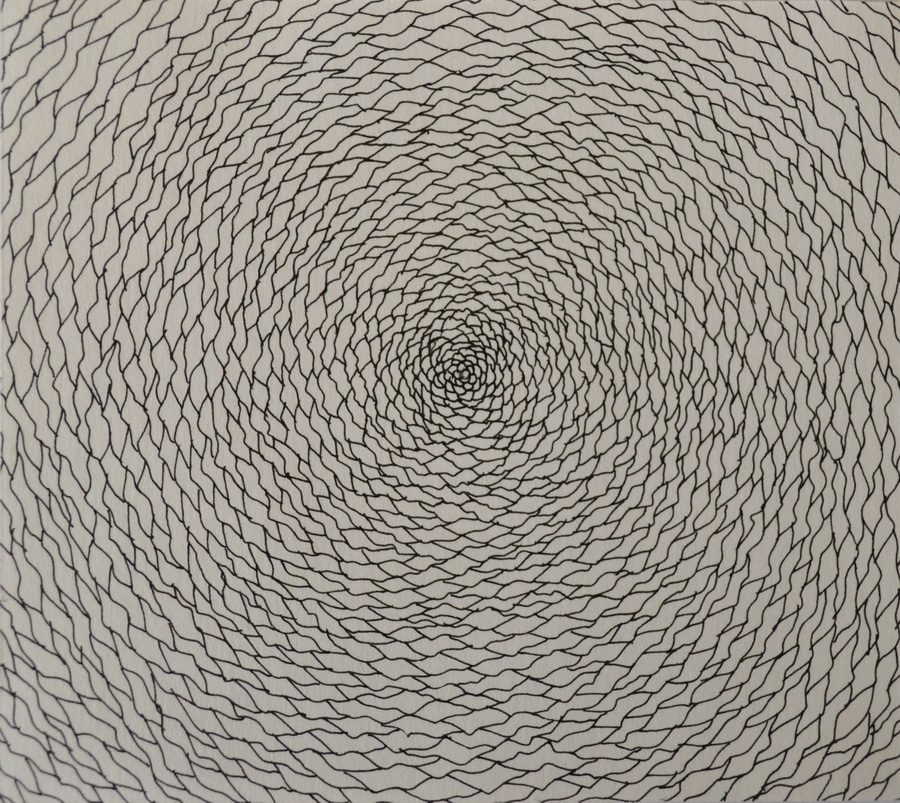 Prvenstveno sam se odmakla od teme kruga zbog zadane teme biennala. Prvo sam imala potpuno drugačiju ideju za biennale. No s tom idejom još nisam spremna izaći u javnost. Ali kroz stalni rad se nekako iskristalizirao crtež koji sam prijavila na biennale. Skica za Pejzaž je zapravo nastala još 2016. godine kao jednostavan crtež koji sam pospremila među ostale skice s kojim trenutno ne znam što bi. Ovo ljeto kada sam razmišljala o temi za biennale taj se crtež sam nametnuo, a njim i cijela priča. U crtežu sam provukla svoj meditativan način građenja i svoju karakterističnu liniju rapidografom.