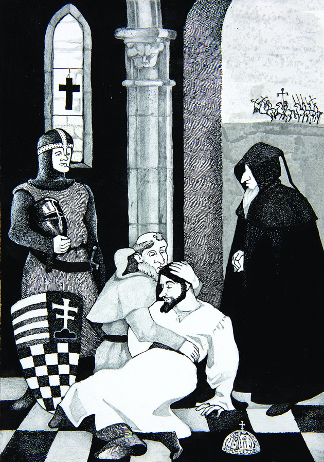 Jednostavnim linijama ostvarena je karikaturalna fizionomija lica glavnih protagonista koji se ističu u komornim kompozicijama narativnog karaktera s rasterski oblikovanim namještajem i dubokim crnilom interijera. Na većem broju ilustracija nalazi se fotografija crkve sv. Marije Magdalene kao jedine sačuvane građevine iz srednjovjekovnog razdoblja u Čazmi, a djelo s prikazom biskupa Augustina Kažotića predstavlja zanimljiv spoj povijesti i sadašnjosti dočaran kroz integriranje kolažiranog dječaka sa šiltericom i školskom torbom u srednjovjekovni događaj. Taj moment možemo tumačiti i kao alegoriju autora i njegovog odrastanja u malom gradu bogate povijesti.