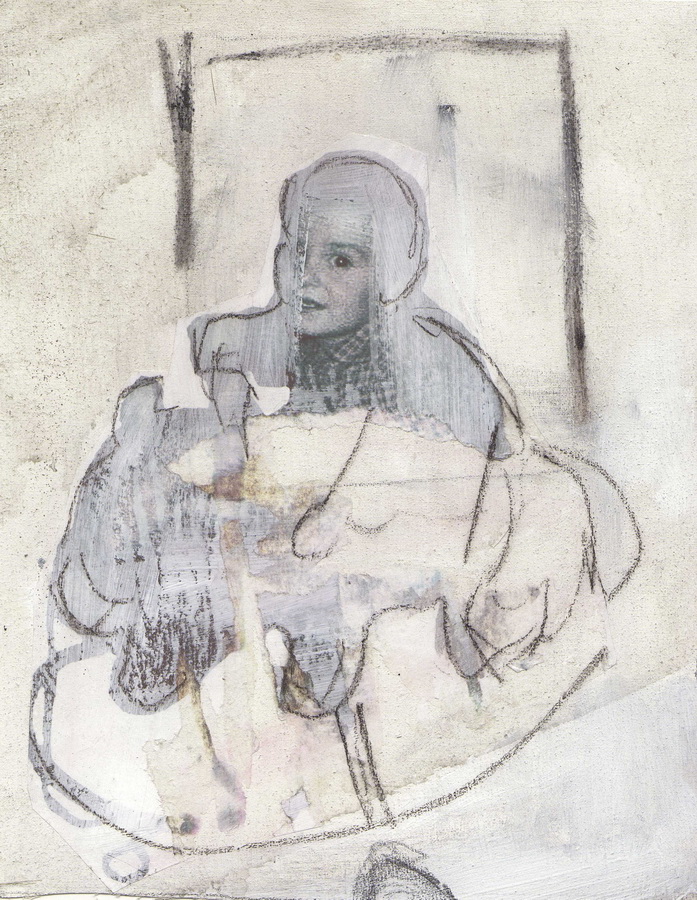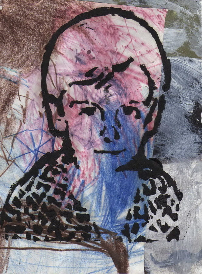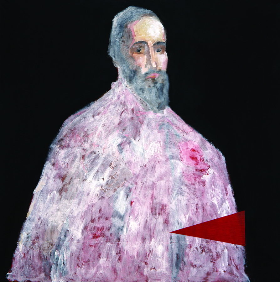 Dva djela u pregledu dosadašnjeg rada Matka Antolčića čine značajan odmak od osobnog, no zadržavaju reference na djela starih majstora. Raniji rad “Portret s trokutom” nastao po slici nepoznatog autora “Sv. Marko Križevčanin” zbog neuobičajene ikonografije ostavlja slobodu i mogućnost značajnog odmaka od likovnog predloška. Naime, Antolčić slika portret muškarca s bradom u poluprofilu slijedeći primjer uzora, no potom ga krajnje dinamičnim potezima prekriva slojem bijele boje naglašavajući anonimnost samog lika i umanjujući pritom vidljivost detalja. Bodež transformira u plohu precizno izvedenog trokuta jarke crvene boje koja postaje dominantan element djela. Rad lišen klasičnih ikonografskih atributa zalazi u područje univerzalnog i potencijalno mogućeg.