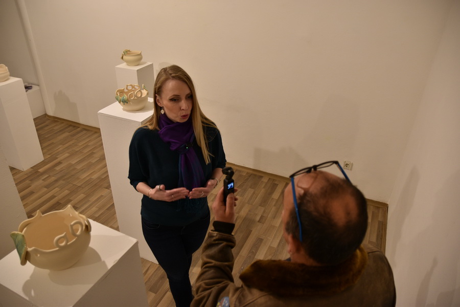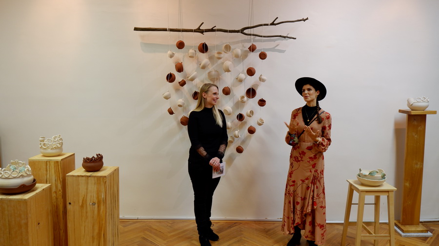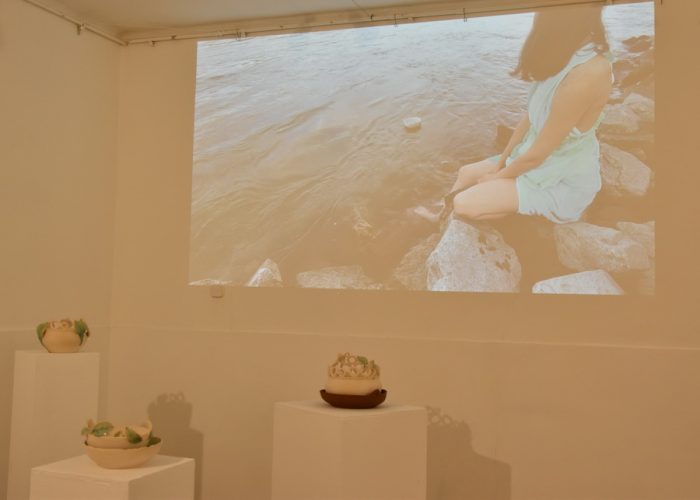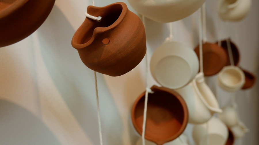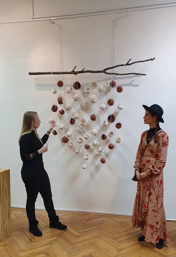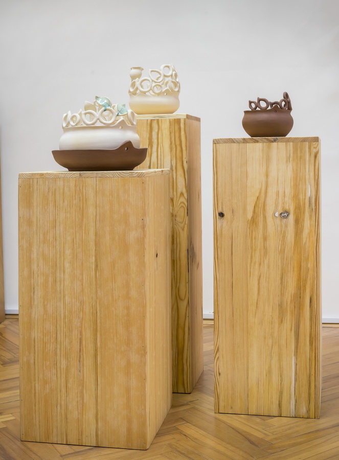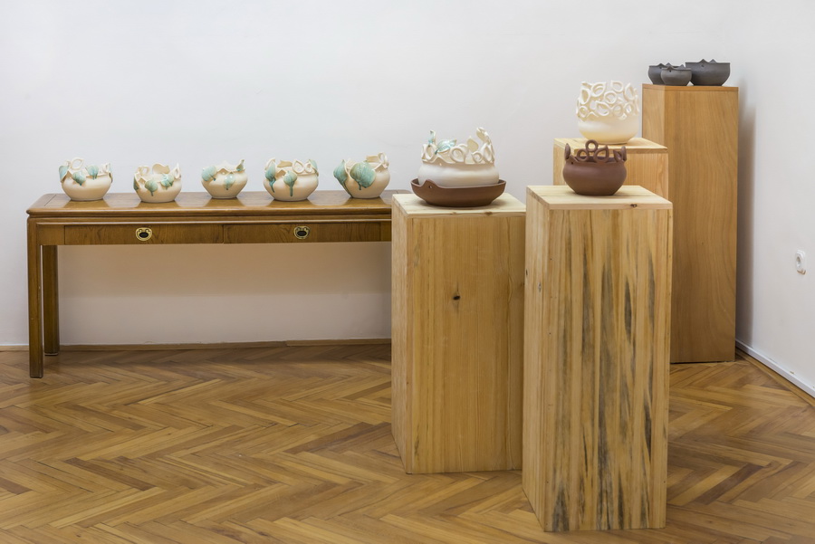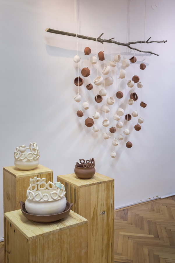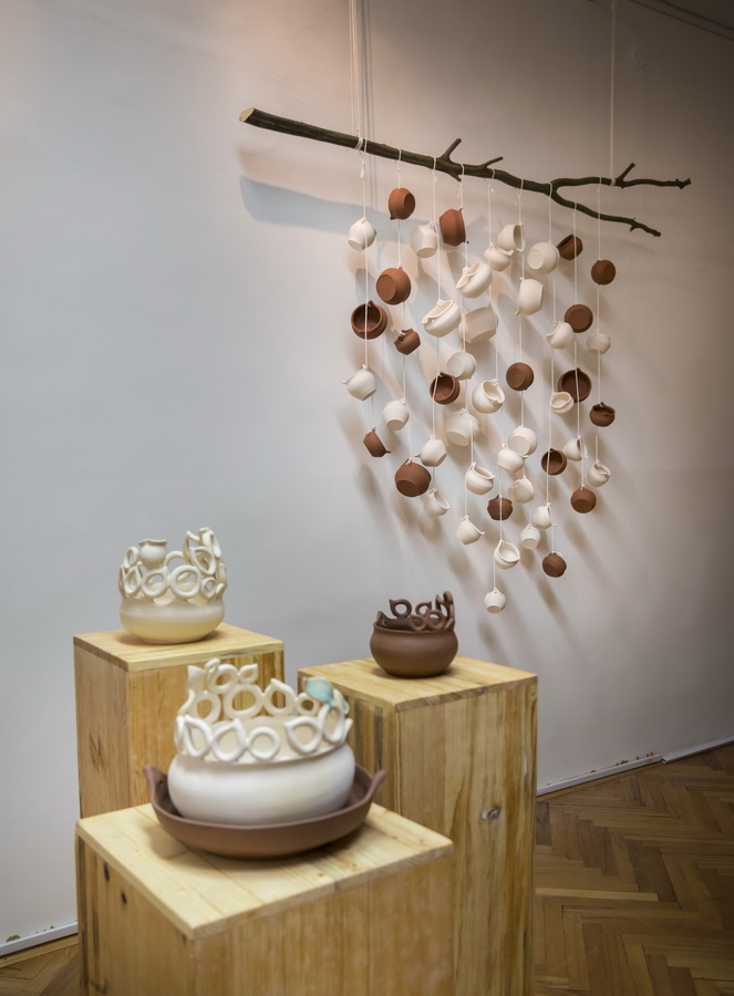 Keramičke posude iz video rada Danubius predstavljene su na izložbi u vidu keramičkih instalacija i keramičkih kompozicija. Viseće keramičke instalacije grupirane su prema boji (crvene, crne i bijele) te načinom izlaganja u formi okomitih nizova pričvršćenih na granama prizivaju neka davna vremena kada je jednostavnost formi ukazivala na ljepotu i bogatstvo života. Posude od crvene gline predstavljaju zemlje povezane s Dunavom, dok bijele keramičke posude ukazuju na doticajna mjesta rijeke s obalom. Tako prostorna ambijentalna instalacija dočarava atmosferu prirodnog okruženja uz rijeku. Jednostavnost i čistoća formi neglaziranih posuda izrađenih od nekoliko vrsta i boja gline ostvarena je po uzoru na tradicijsko lončarstvo otoka Iža. Posude su vrlo slične, ali opet različite te predstavljaju varijacije na temu. Neke su uže, dublje, šire, pliće što ukazuje na različitost njihove primjene u prošlim vremenima. Objedinjuje ih bazična ljepota – meke, glatko obrađene zaobljene forme svojim pročišćenim izrazom ukazuju na srž forme, srž boje i u konačnici, simbolički, na srž života. Samostalne keramičke kompozicije iskazuju bogatiju obradu i razvedenije forme. Rubovi se šire i račvaju oblikujući niz prošupljenih kružnih formi s jedne strane, te niz lisnatih oblika s druge strane. Akcenti lišća često su bojani i glazirani te hvataju svjetlost i zrcale svijet oko sebe. Naglasak je na čistoj ljepoti prirode i njezinim blagodatima koje istovremeno ukazuju na duboko urođene poveznice između ljudi, kultura i naroda te prizivaju na povratak nepatvorenim ljudskim vrijednostima.