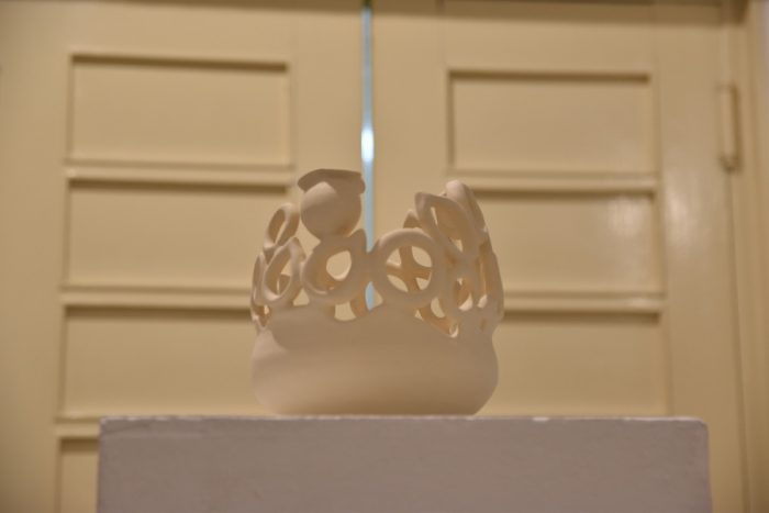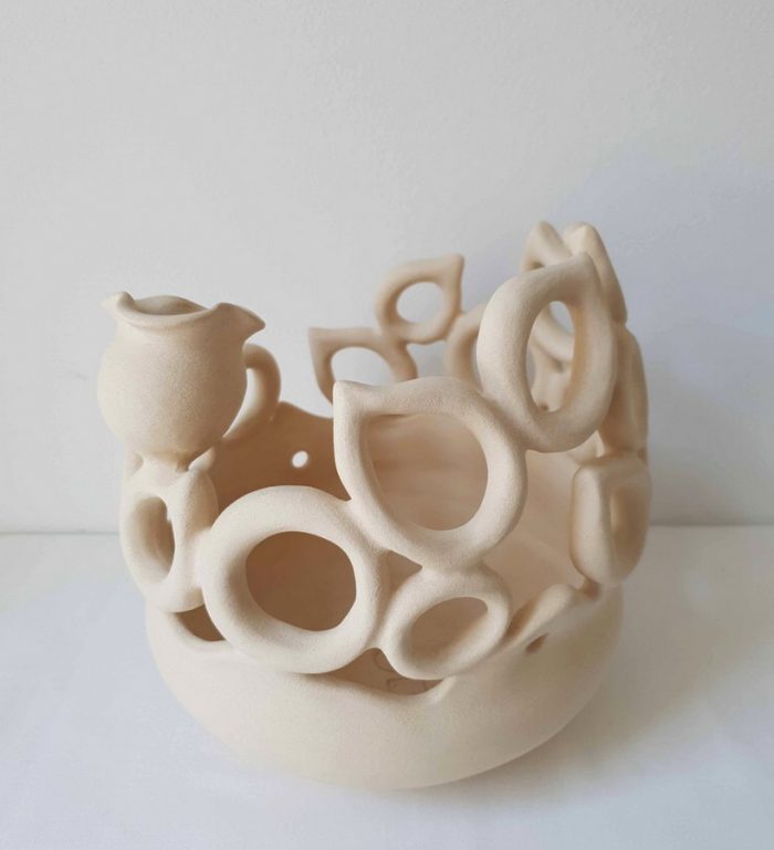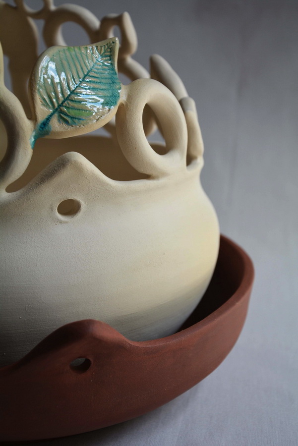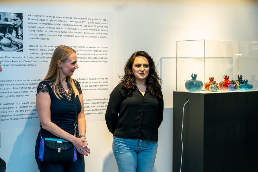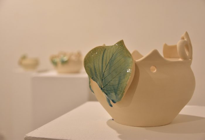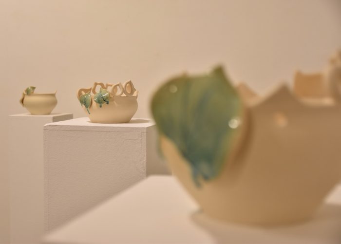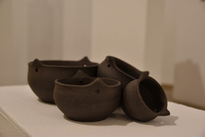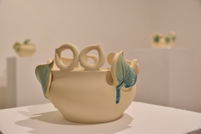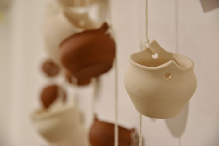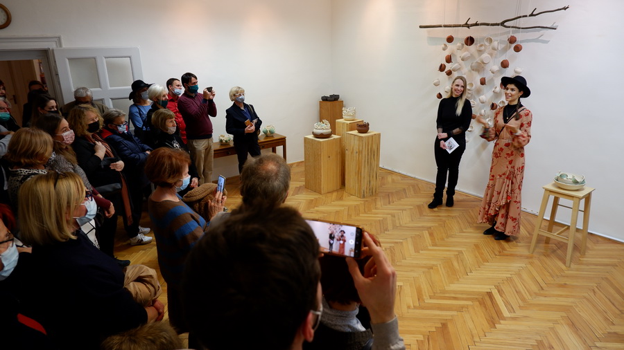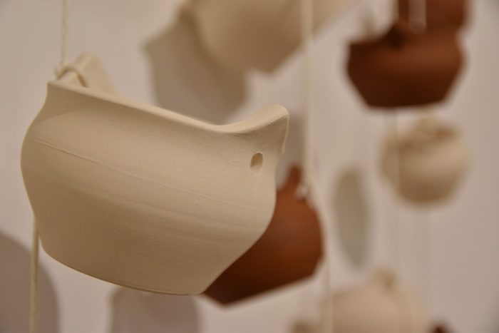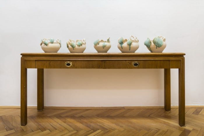 Keramičke posude iz video rada Danubius predstavljene su na izložbi u vidu keramičkih instalacija i keramičkih kompozicija. Viseće keramičke instalacije grupirane su prema boji (crvene, crne i bijele) te načinom izlaganja u formi okomitih nizova pričvršćenih na granama prizivaju neka davna vremena kada je jednostavnost formi ukazivala na ljepotu i bogatstvo života. Posude od crvene gline predstavljaju zemlje povezane s Dunavom, dok bijele keramičke posude ukazuju na doticajna mjesta rijeke s obalom. Tako prostorna ambijentalna instalacija dočarava atmosferu prirodnog okruženja uz rijeku. Jednostavnost i čistoća formi neglaziranih posuda izrađenih od nekoliko vrsta i boja gline ostvarena je po uzoru na tradicijsko lončarstvo otoka Iža. Posude su vrlo slične, ali opet različite te predstavljaju varijacije na temu. Neke su uže, dublje, šire, pliće što ukazuje na različitost njihove primjene u prošlim vremenima. Objedinjuje ih bazična ljepota – meke, glatko obrađene zaobljene forme svojim pročišćenim izrazom ukazuju na srž forme, srž boje i u konačnici, simbolički, na srž života. Samostalne keramičke kompozicije iskazuju bogatiju obradu i razvedenije forme. Rubovi se šire i račvaju oblikujući niz prošupljenih kružnih formi s jedne strane, te niz lisnatih oblika s druge strane. Akcenti lišća često su bojani i glazirani te hvataju svjetlost i zrcale svijet oko sebe. Naglasak je na čistoj ljepoti prirode i njezinim blagodatima koje istovremeno ukazuju na duboko urođene poveznice između ljudi, kultura i naroda te prizivaju na povratak nepatvorenim ljudskim vrijednostima.